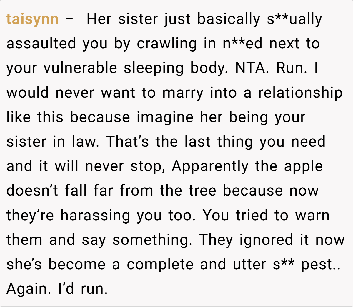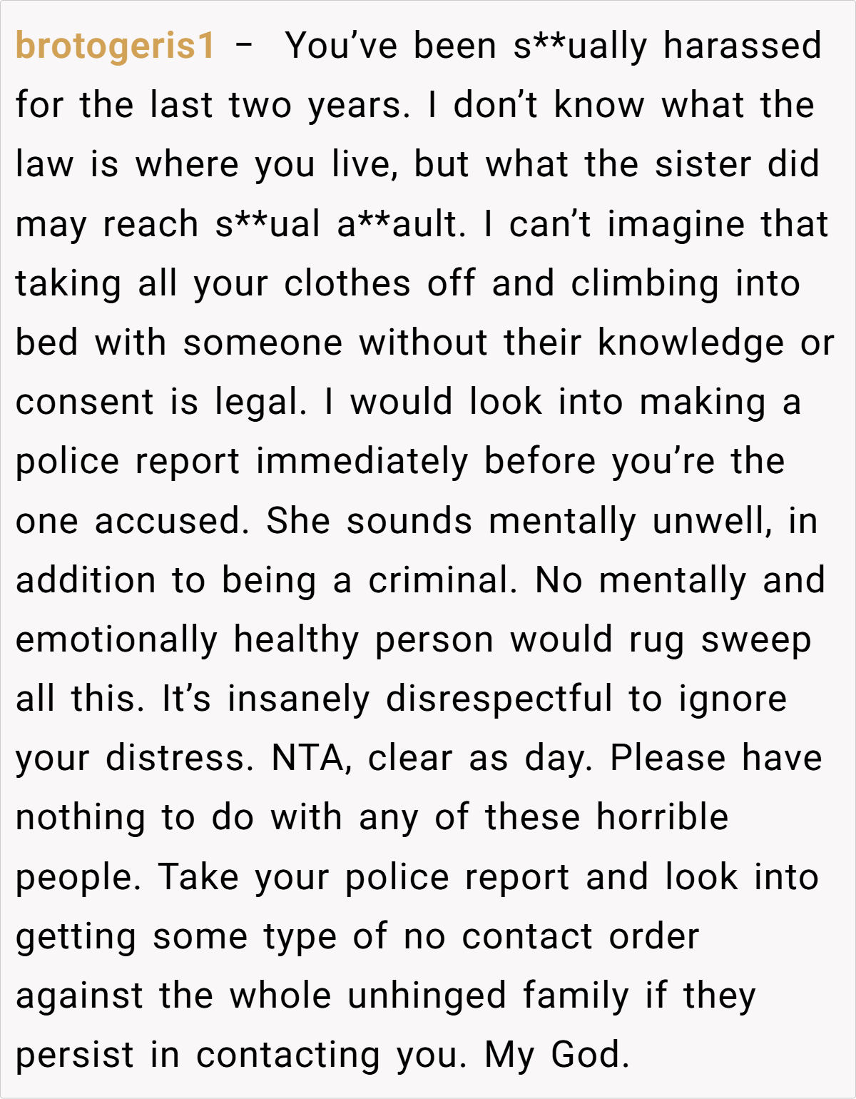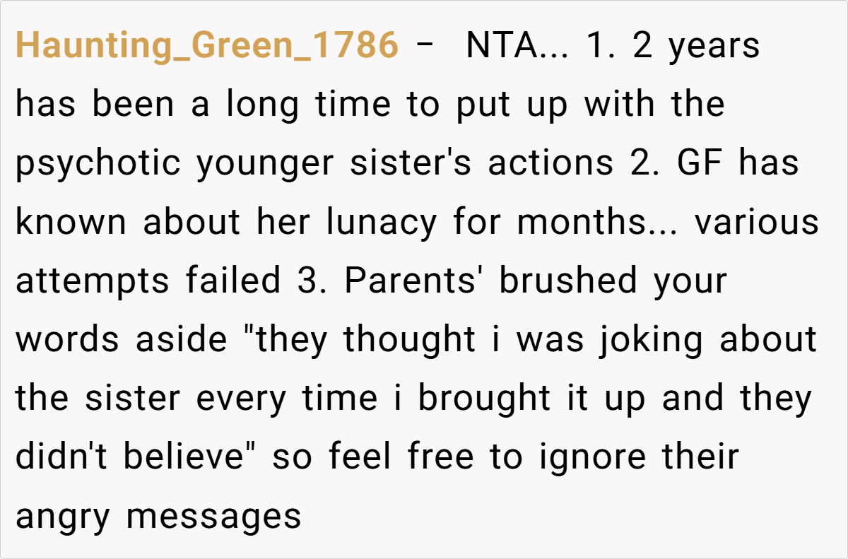 The Reddit community has been unequivocal in their support. Many commenters have called out the sister’s behavior as blatant sexual harassment, with statements such as, “This is sexual assault in disguise,” and “You did nothing wrong—your boundaries were continuously disrespected.” Others point out that the repeated warnings and clear communication should have been enough, and the fact that nothing changed is a damning indictment of her family’s inaction.