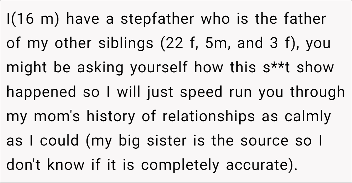 Navigating the complexities of blended families can feel like walking through a minefield. Emotions run high, old wounds linger, and the search for acceptance and belonging can be a long and winding road. Our 16-year-old protagonist found himself in a particularly tricky situation.