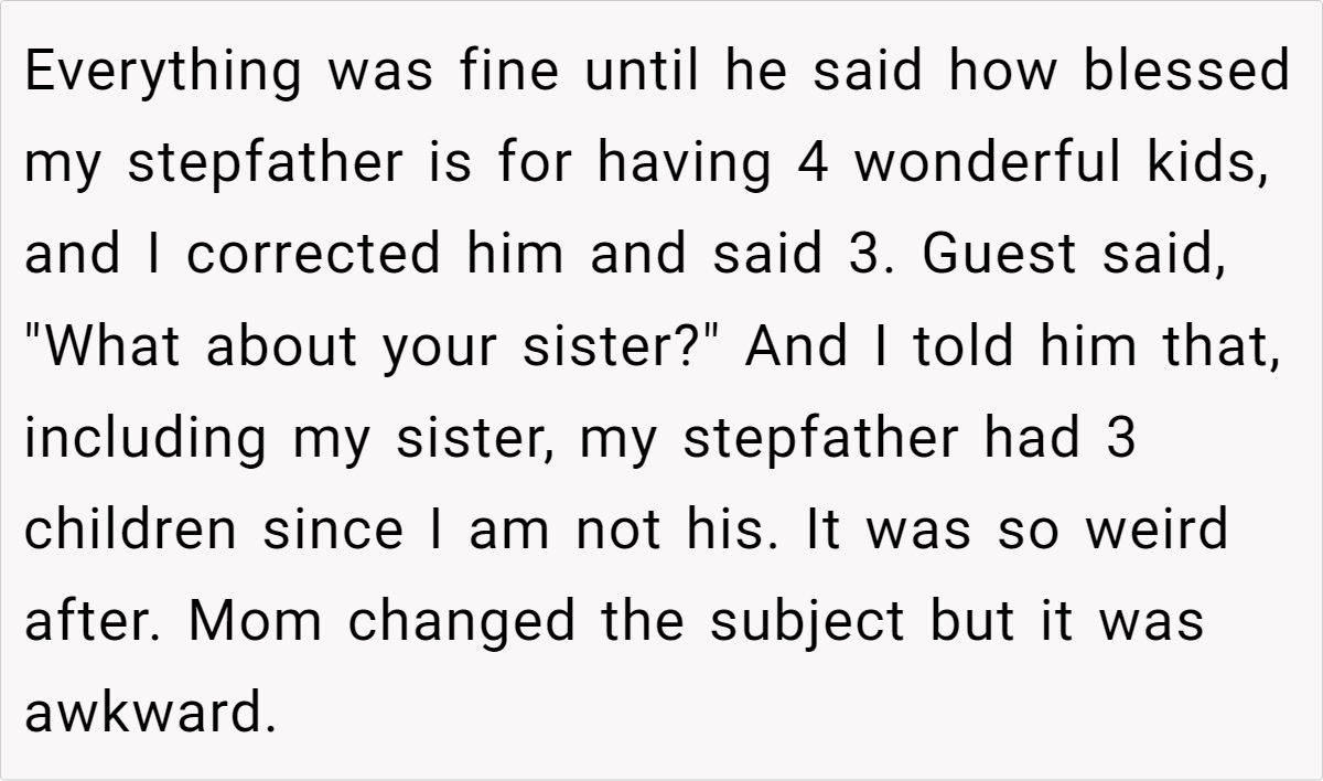 AITAH for correcting my step father’s guest about the number of children my step father has?