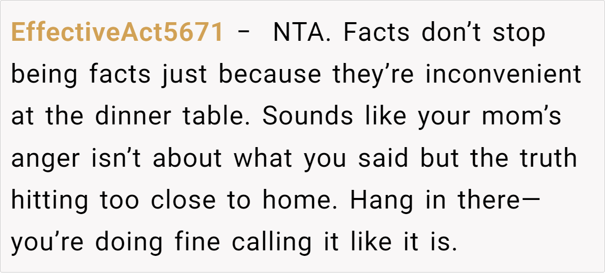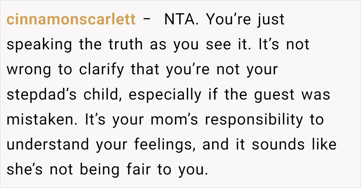 While the responses range from staunch support for the teen’s honesty to critiques of airing family grievances in public, they underscore the complexities of navigating blended family relationships. These opinions are popular on Reddit, but do they really capture the full reality of such a deeply personal issue?