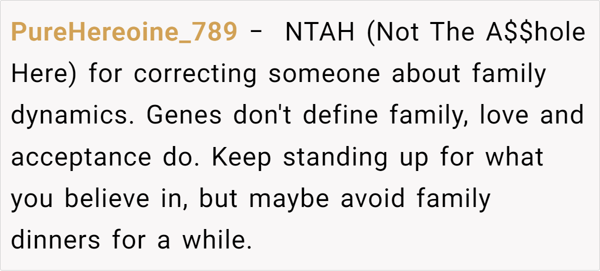 As emotions flared, the teen’s candid correction ignited more than just a factual dispute; it exposed painful family history and unresolved resentments. The situation raises important questions about identity, loyalty, and the right to speak one’s truth in the face of overwhelming family expectations.