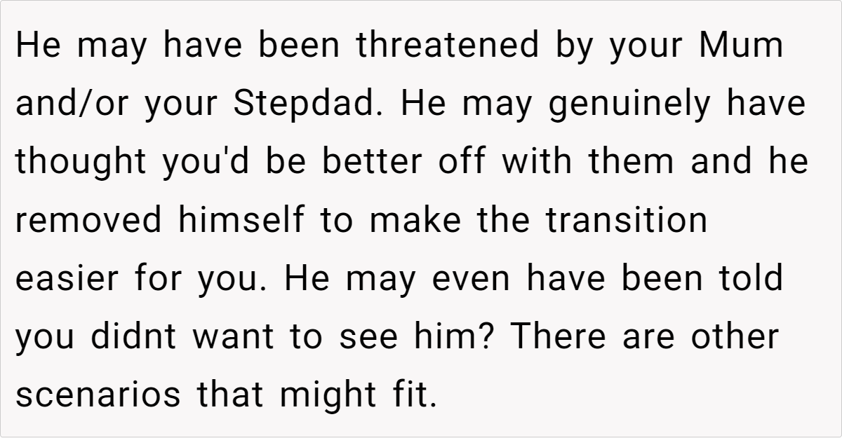 Your dad may have given up on himself… He may have found out that your mother cheated on him (and it might not have been the father of the other three kids that is currently your stepdad – women who cheat don’t always know who fathered which kid and men who cheat don’t always accept responsibility for what happened after the fun part).
