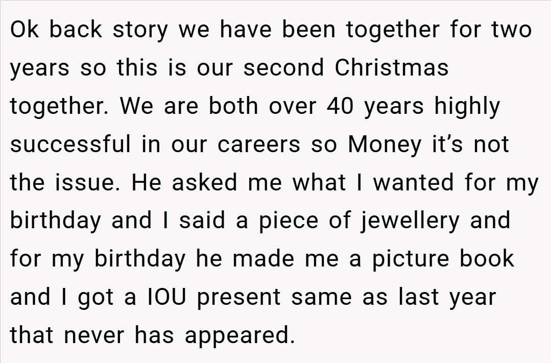 Every relationship has its ups and downs, but sometimes the smallest gestures can reveal deeper disappointments. Our OP, a 22‑year‑old woman in a successful relationship with her boyfriend—both of whom are over 40 and financially secure—recently experienced a Christmas morning that left her in tears.