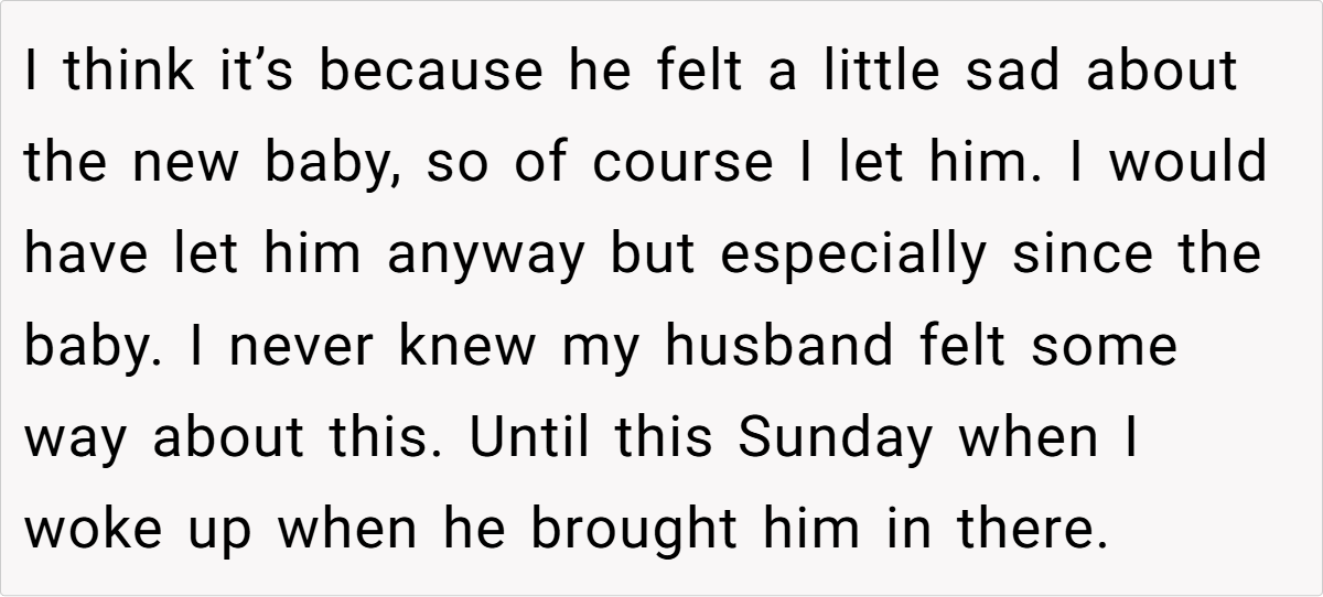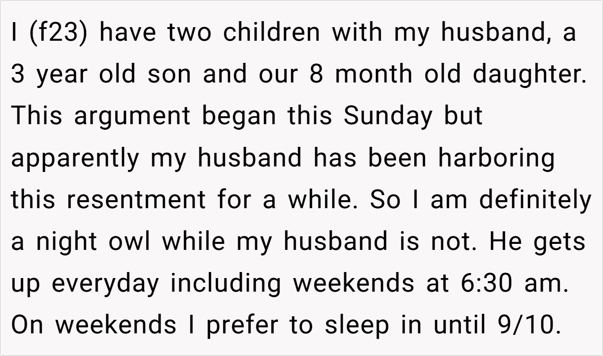 Family routines can be a source of comfort—or unexpected conflict. In this story, a young mom in her early twenties shares an everyday morning ritual that suddenly became a flashpoint. While she, a self-proclaimed night owl, cherishes the extra cuddle time with her 3-year-old son in the quiet morning hours, her husband, an early riser, sees things very differently. For him, those extra moments of mom-and-son bonding have begun to feel like overindulgence, triggering unexpected resentment and sparking a heated argument.