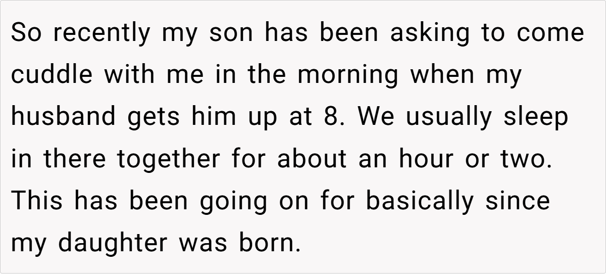 ‘AITAH for cuddling with my son in the morning when my husband gets out of bed?’