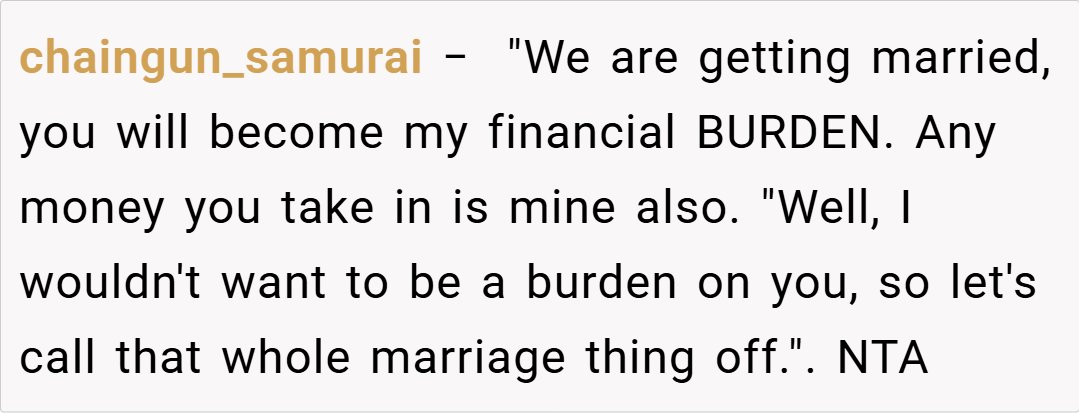 Many redditors understand the OP’s reaction, arguing that inheritances are personal and should not be treated as marital property by default. They emphasize that if the money is meant for her, it’s not fair for her fiancé to assume he’s entitled to it, no matter their marital status.
