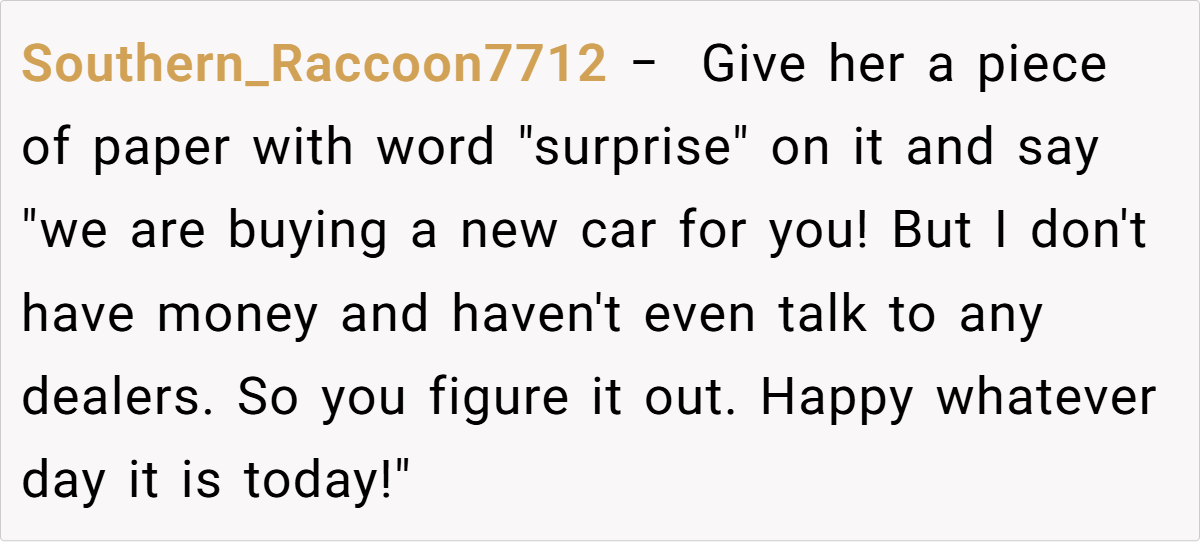 Many agree that while the gift was creative, it quickly morphed into a burdensome expectation, leaving the husband caught between appreciation and logistical stress. Others point out that the wife’s intentions, though well-meant, could have been better communicated to avoid misunderstandings. Overall, the comments reflect a consensus: clear expectations are key, and when gifts come with strings attached, they can inadvertently set the stage for ongoing frustration.