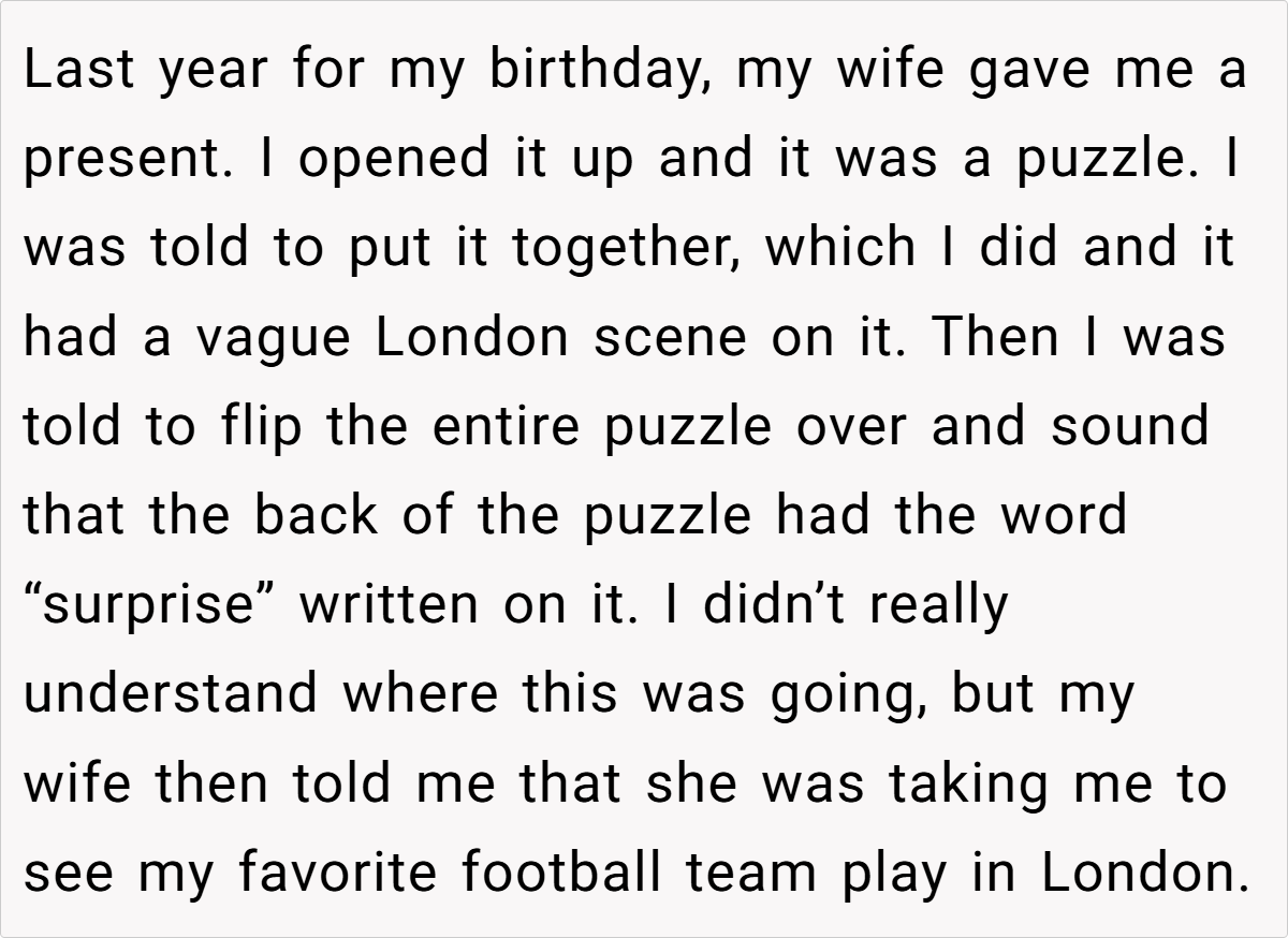Gifts in a relationship are meant to be expressions of love and thoughtfulness, yet when they come bundled with unspoken expectations, they can quickly become a source of tension. In this story, what appeared to be a delightful surprise—an invitation to watch a favorite football team play in London—transformed into an unintended burden.