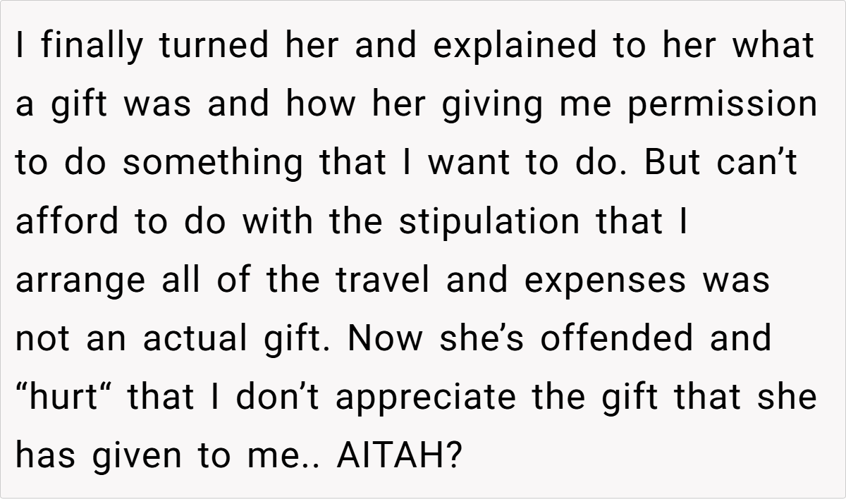 The gift wasn’t about the excitement of a shared experience but rather about the hidden stipulation that the husband had to organize and finance the entire trip. This subtle twist underscores how a well-meant gesture can backfire when the giver’s intentions aren’t clearly communicated.