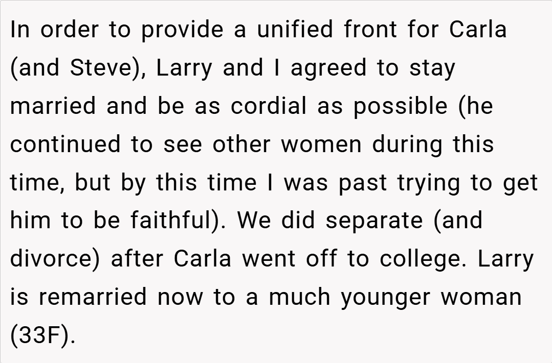 Family therapist Dr. James Cooper adds, “When a partner sacrifices their own well-being for the sake of the family, it’s understandable that their personal transformation might be delayed. A divorce can act as a catalyst for change, and reclaiming one’s identity after years of neglect is both empowering and necessary.”