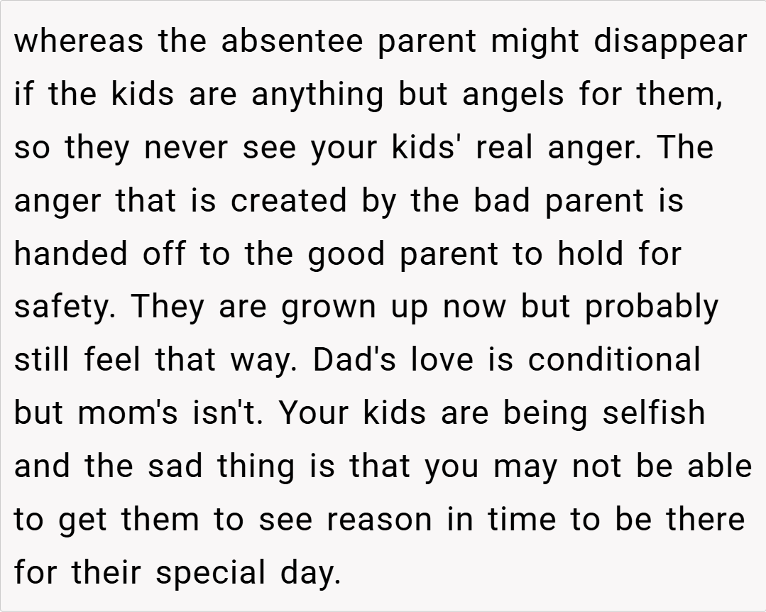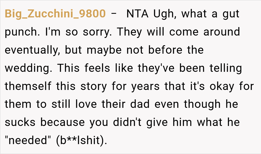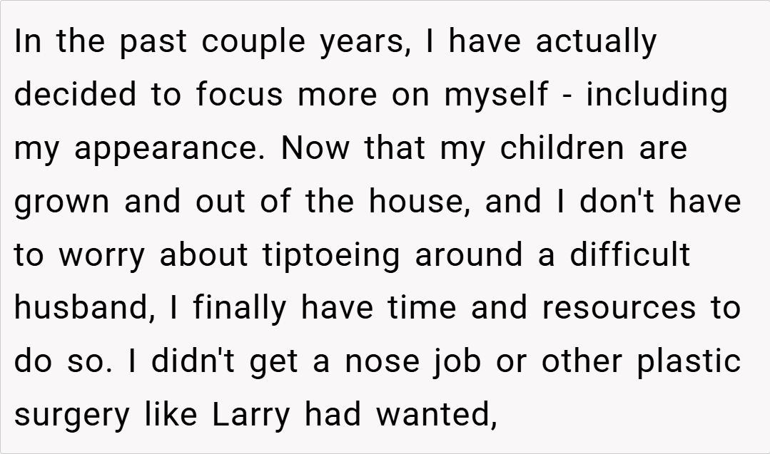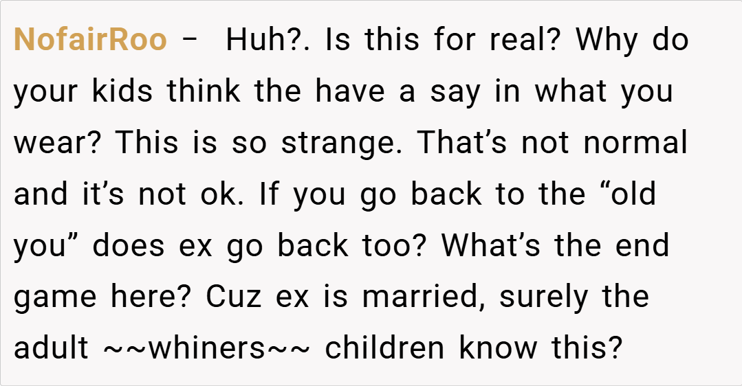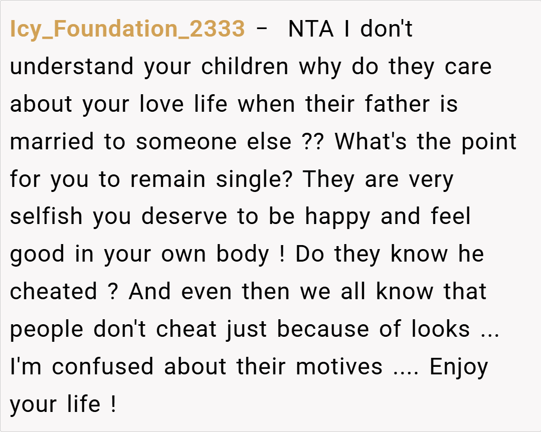 The online community is divided on this issue. In one comment, several users praised the writer for finally prioritizing her well-being, stating that self-love shouldn’t be contingent on another’s approval. One user commented, “You deserve to be happy and feel good about yourself, regardless of what anyone expected of you back then.”