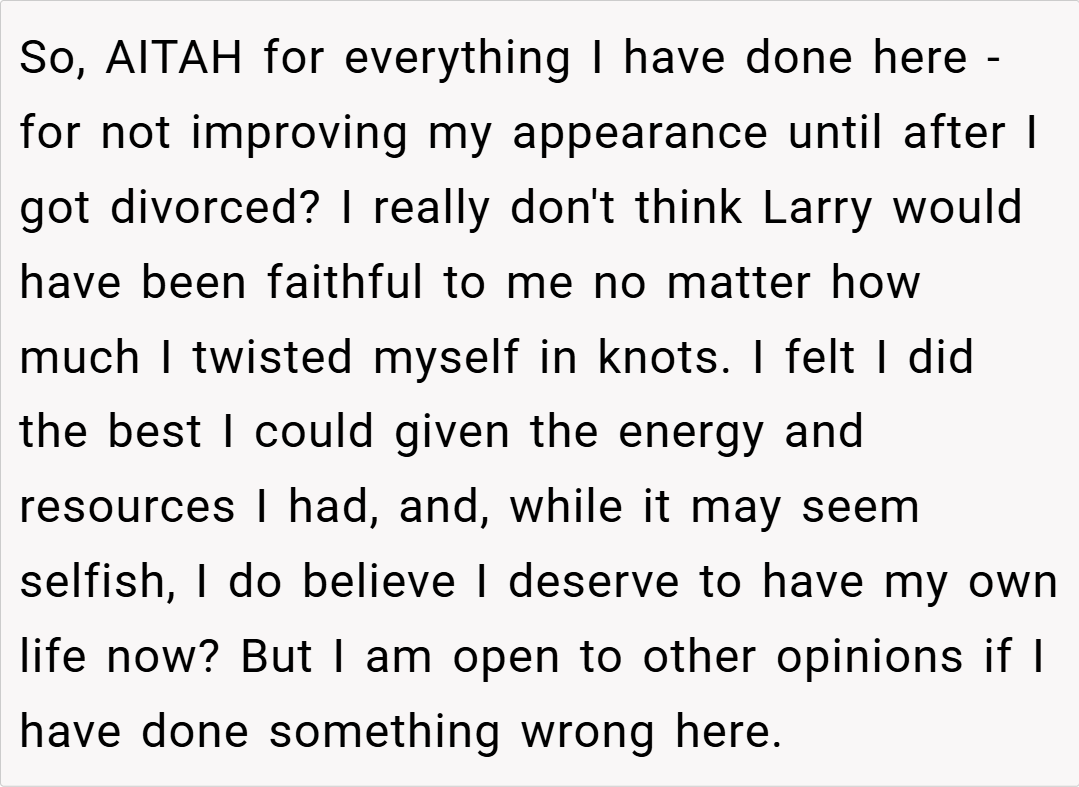 ‘ AITAH for “glowing up” after my divorce and not before?’
