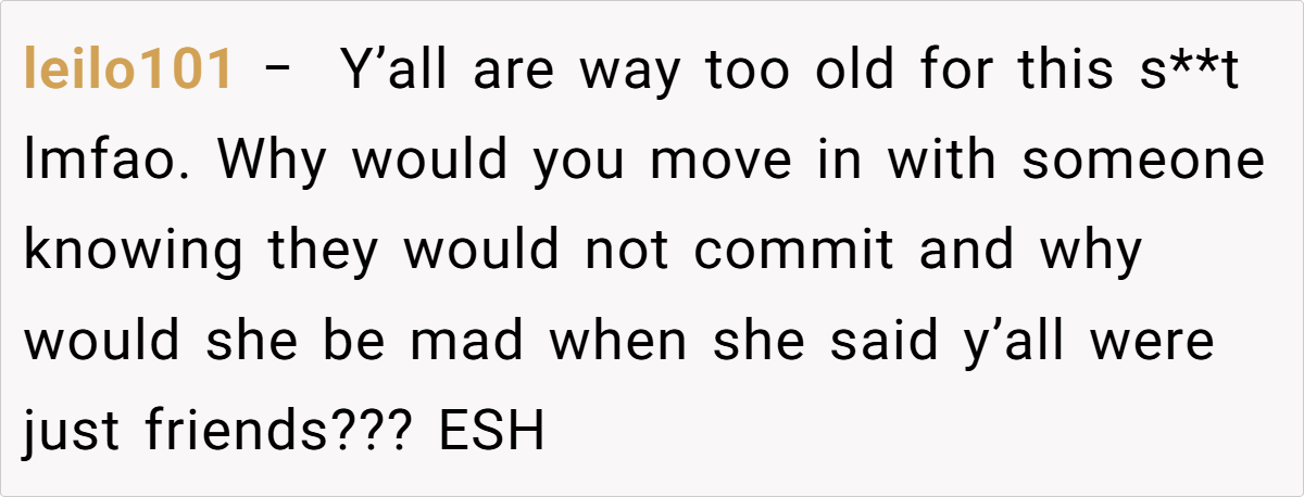 The Reddit community’s reactions to this post were mixed but leaned toward supporting his decision. Many users felt that after a year of ambiguous commitment, he was justified in exploring his options. They argued that if Amanda truly wanted a partnership, she would have acknowledged it without delay. Others, however, criticized him for not showing enough respect by involving another person in the shared home environment.