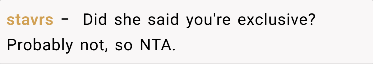 Relationship experts emphasize that clarity and mutual understanding are fundamental to any healthy partnership. Dr. John Gottman, a renowned relationship researcher, explains, “When partners do not share the same expectations, especially regarding exclusivity, it creates a breeding ground for resentment and hurt feelings.” [] In this case, the lack of clear communication led to a situation where one partner felt justified in seeking validation elsewhere.
