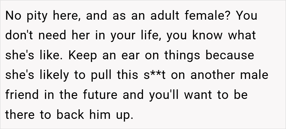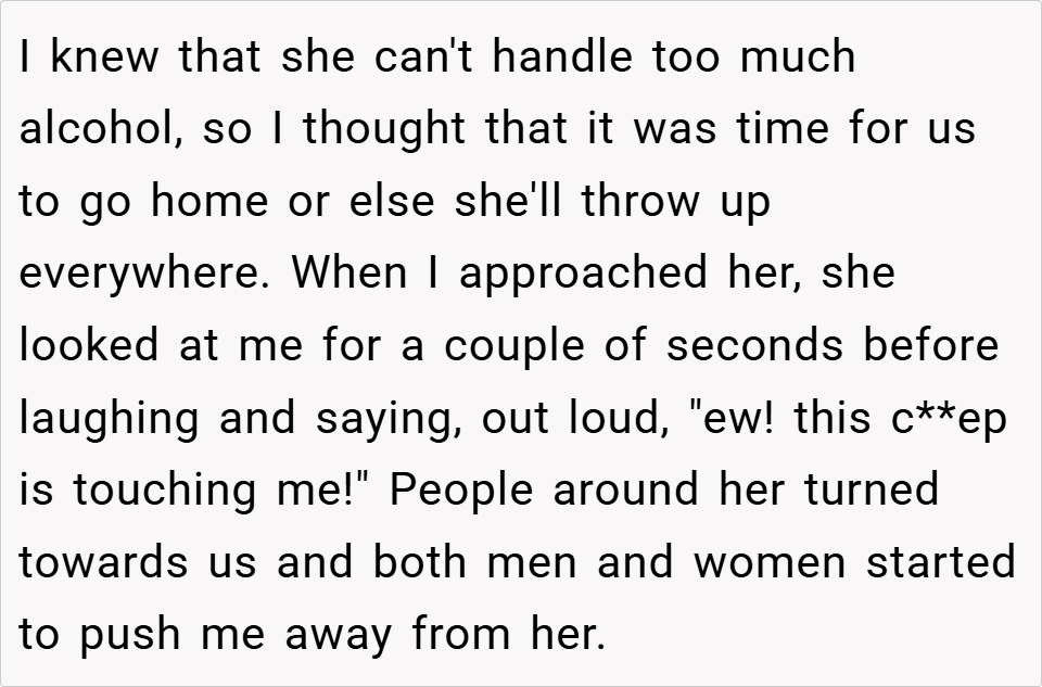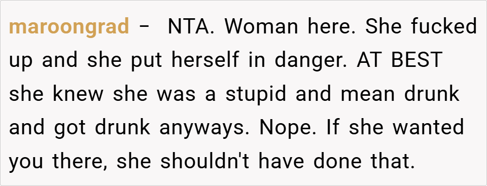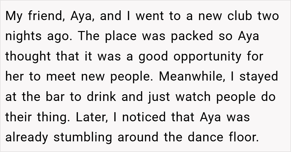 The narrator and his friend Aya went to a club, where Aya, after drinking too much, pulled a dangerous stunt—loudly accusing the narrator of inappropriate behavior when he was simply trying to help her. This false accusation led to a tense and hostile situation, forcing the narrator to flee for his own safety. The next morning, Aya dismissed it as a “prank” and accused him of abandoning her. The incident has since divided their mutual friends, sparking a debate about personal responsibility, safety, and the limits of friendship.