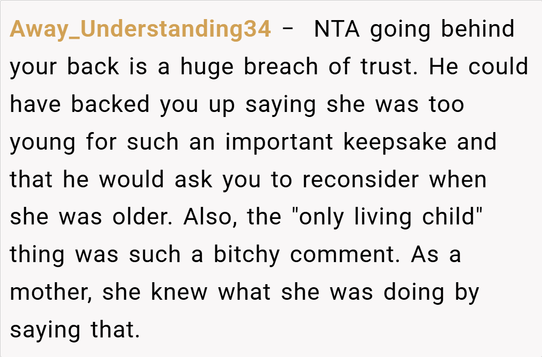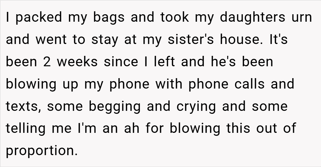When a partner disregards the sanctity of cherished memories, it can shake the very foundation of trust in a relationship. In this case, the loss of a beloved daughter was already an overwhelming burden, and the act of giving away her ashes without consent transformed personal grief into a public betrayal.