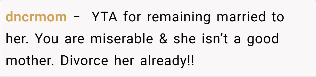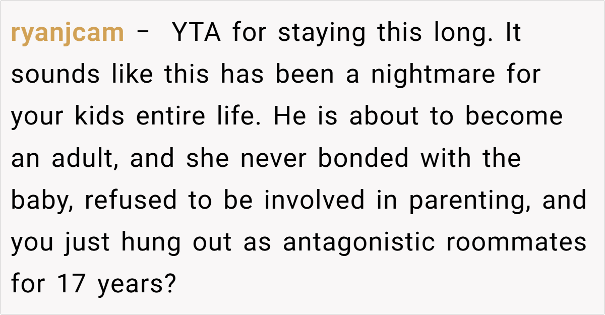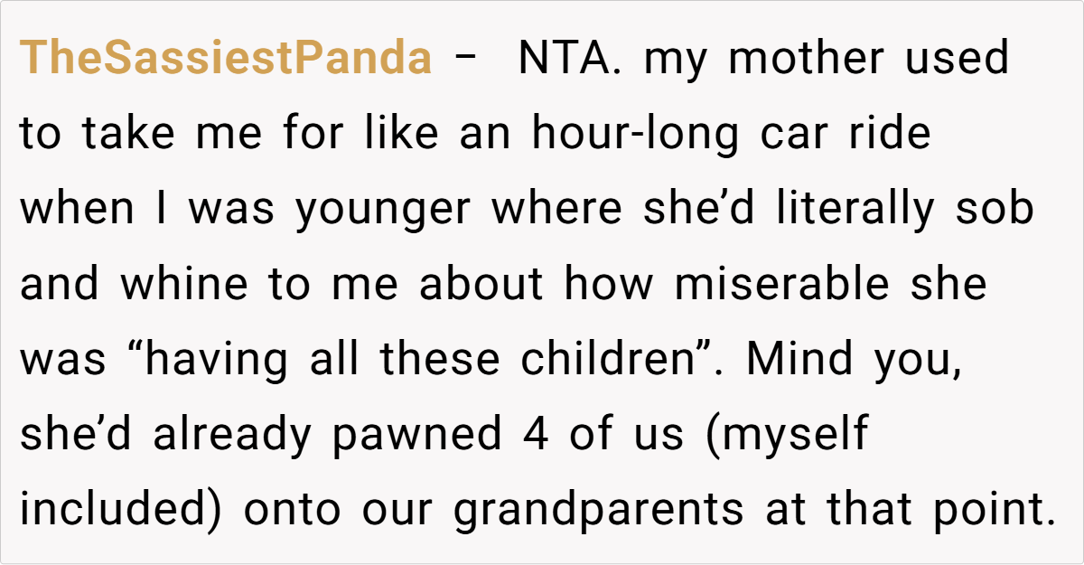 For years, this family has struggled with unresolved issues stemming from postpartum depression, unmet expectations, and mounting resentment. Now, with their son on the verge of adulthood, he’s firmly declared that he no longer sees his mother as “his mother.”