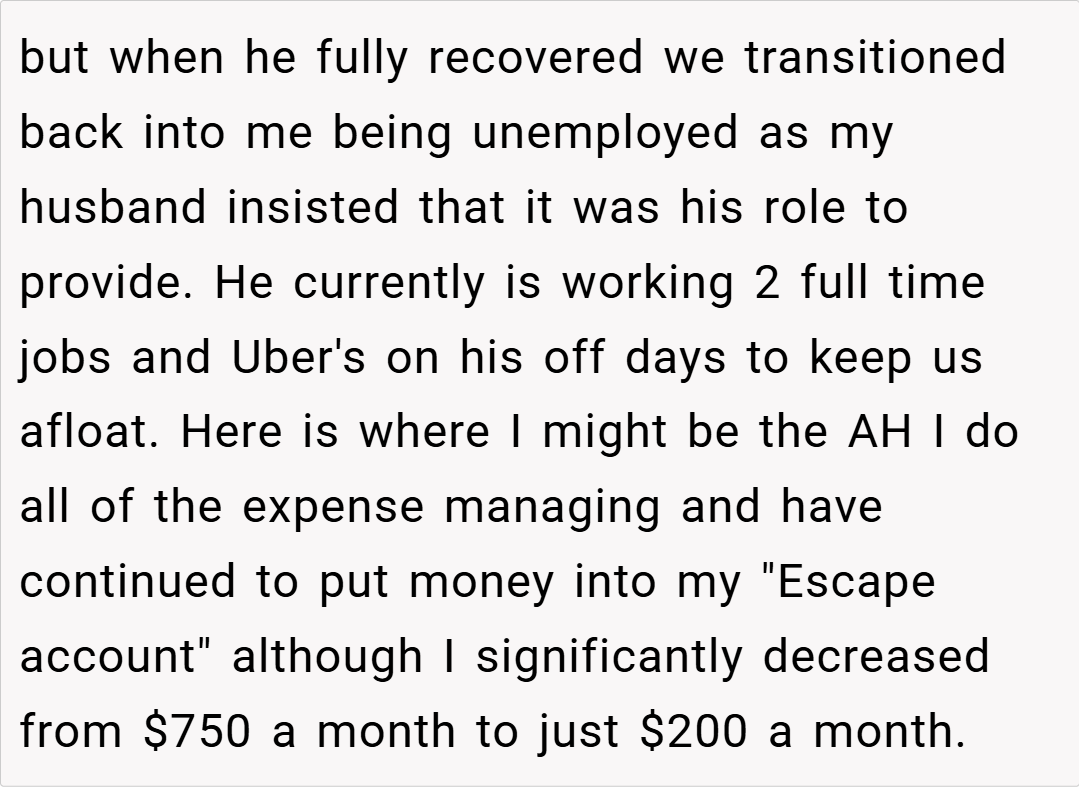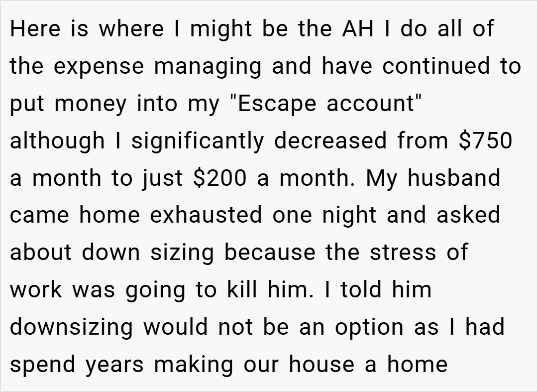 ‘AITAH For not giving my husband my “escape money” when I saw that we were financially struggling?’