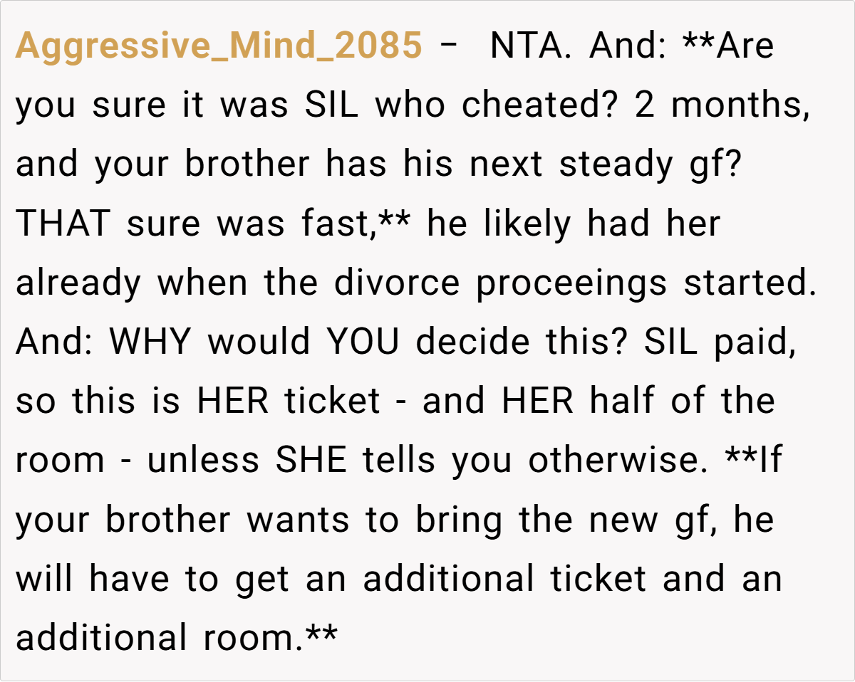 AITAH for not making my brother’s soon-to-be ex-wife give up her plane ticket to his current girlfriend?