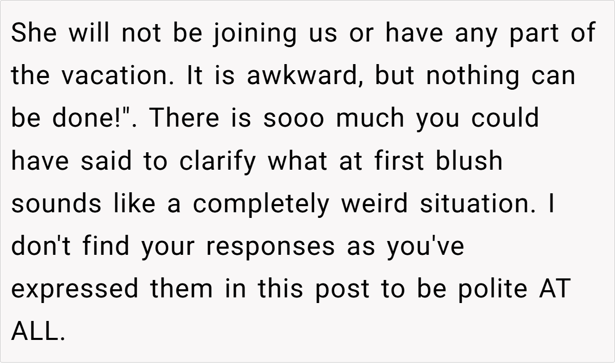 Others, however, believe that given the history of conflict, the ex-wife’s presence on the trip might create an emotionally charged atmosphere, and that accommodating the new girlfriend’s feelings could have been a more diplomatic gesture. The discussion reflects a broader debate about balancing financial fairness with emotional sensitivity in family dynamics.