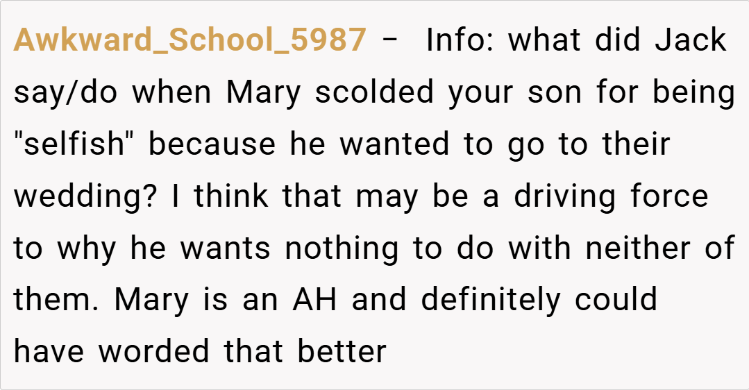 In the end, the OP’s declaration that his ex chose their children over their relationship—and that her resulting loneliness is her own burden—reflects a deep, unresolved imbalance in their marriage. While some may view his words as harsh, many agree that after years of being sidelined, it’s only natural for him to demand that mutual support be a cornerstone of any lasting partnership.