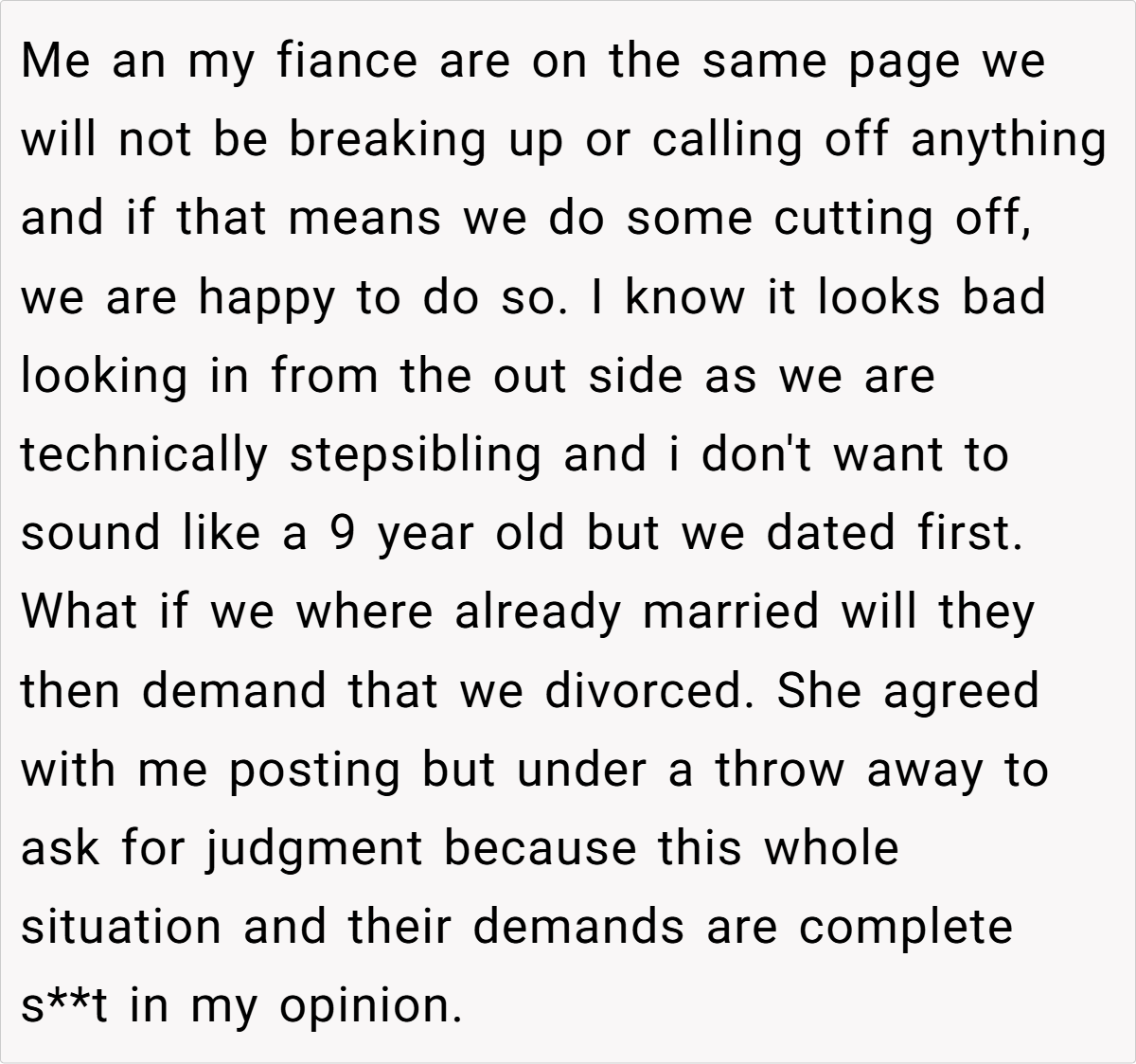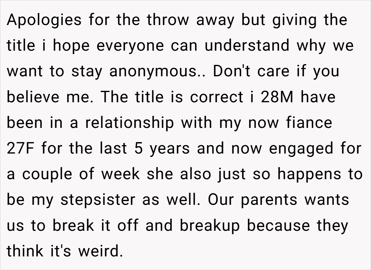 ‘AITAH for not wanting to breakup my engagement with my fiance that happens to be my stepsister?’