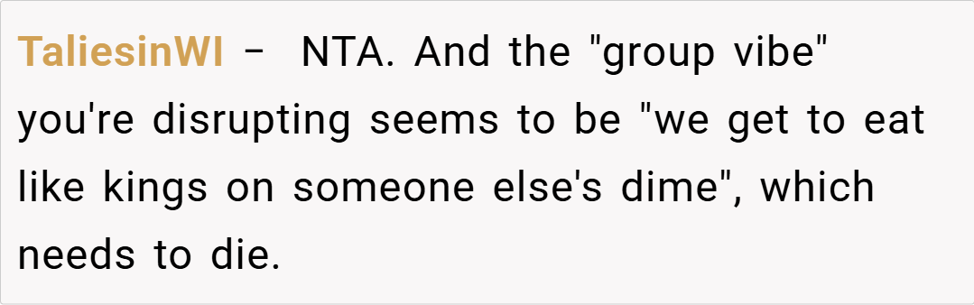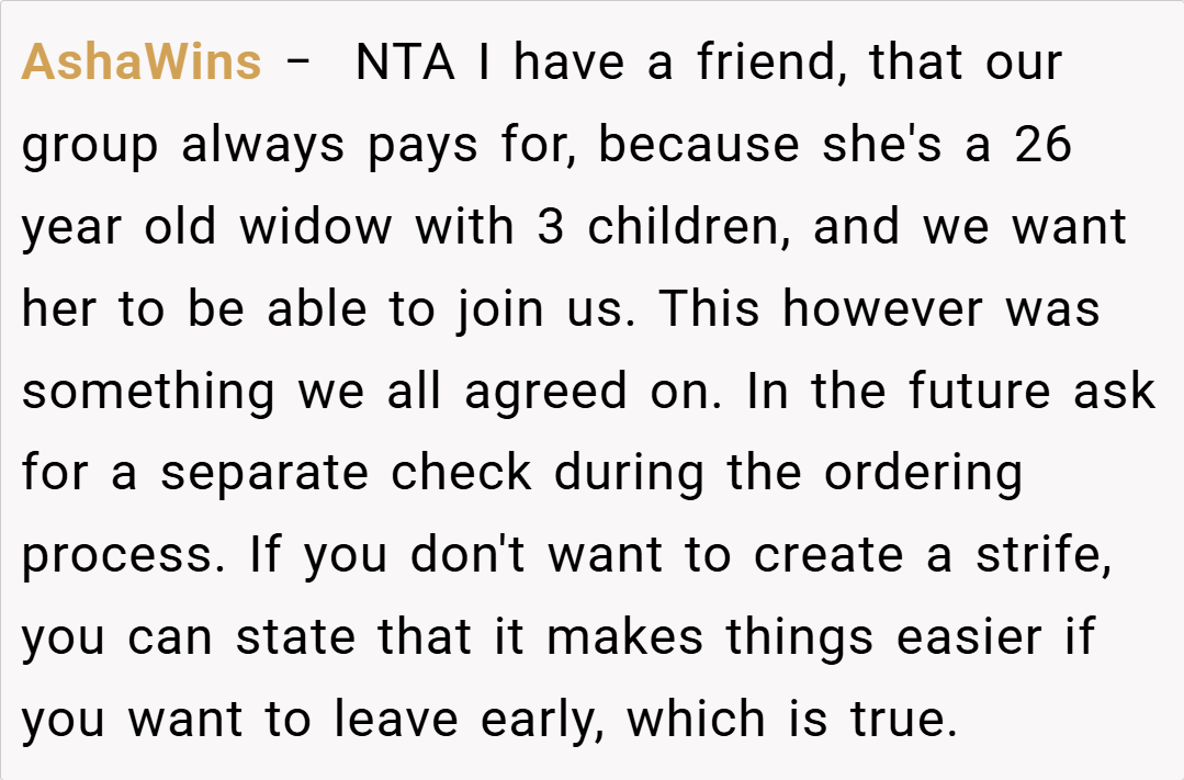 What do you think? Is it fair to preemptively strike against a tradition that benefits some at the expense of others, or should the group stick to a shared bill regardless of individual orders? Share your thoughts and experiences in the comments below!
