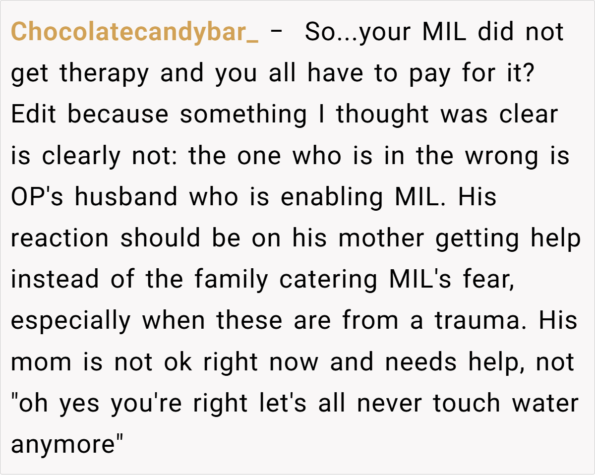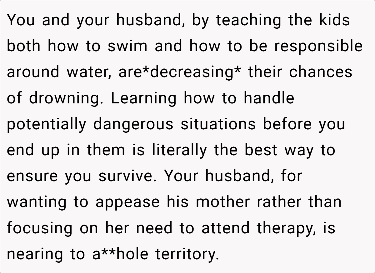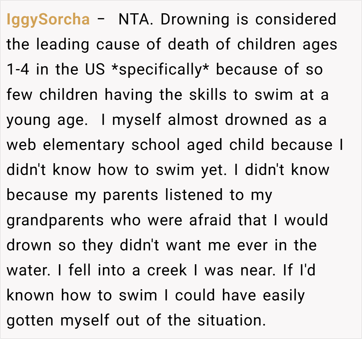 Others, however, express empathy for the MIL, suggesting that perhaps a more gradual introduction to the idea of a pool might have lessened her anxiety. Still, the prevailing sentiment is that the family’s right to create a home that suits their needs including a safe, modern pool environment should take precedence over a relative’s unresolved grief.
