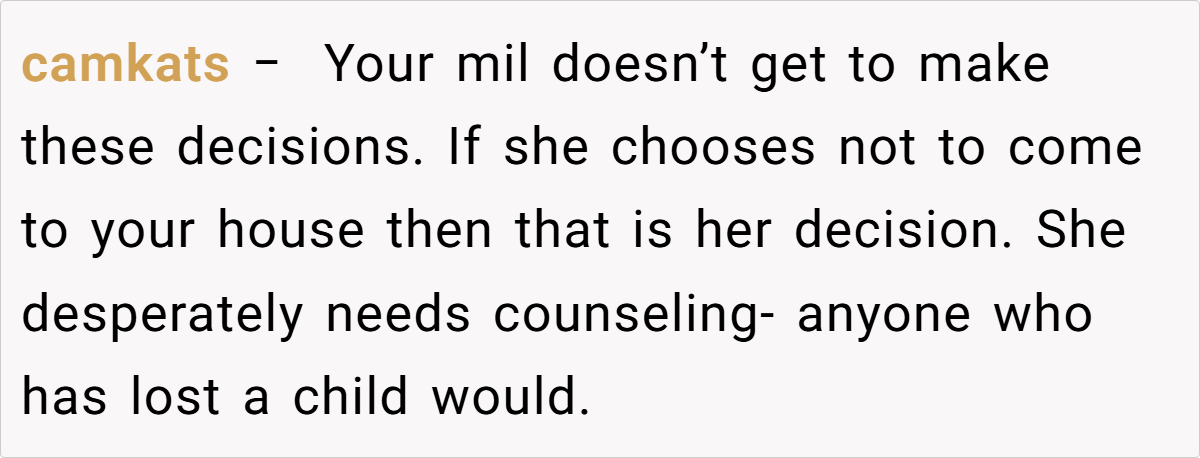The Reddit community’s reaction to this dilemma is notably divided. Many redditors argue that the poster is NTA (Not The A**hole) because she and her husband made a well-informed, mutually agreed-upon decision to improve their quality of life. They emphasize that the MIL’s reaction, although sympathetic given her personal loss, should not dictate the living choices of a nuclear family.