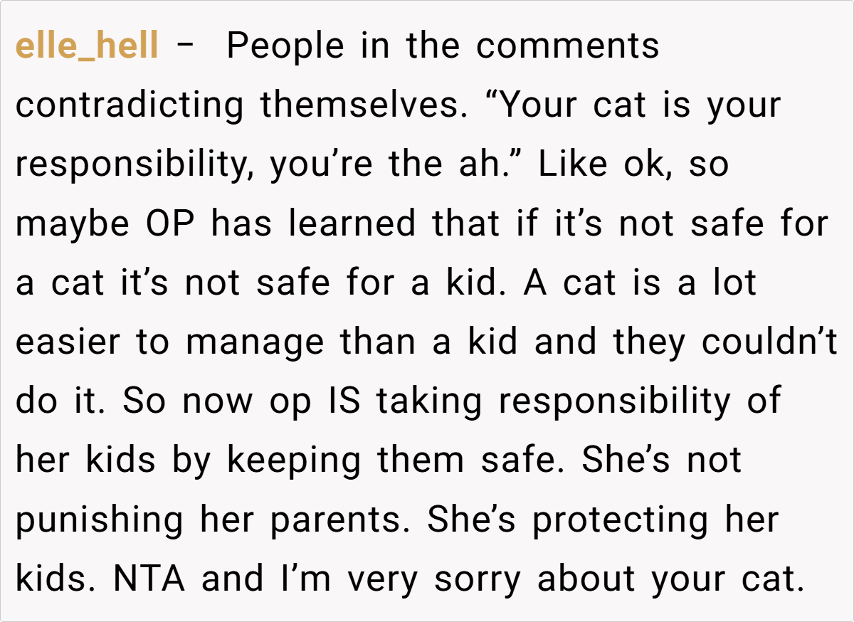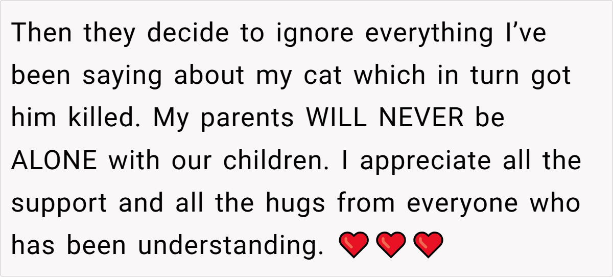 ‘AITAH for refusing my parents their grandchildren cause they k**led my cat?’