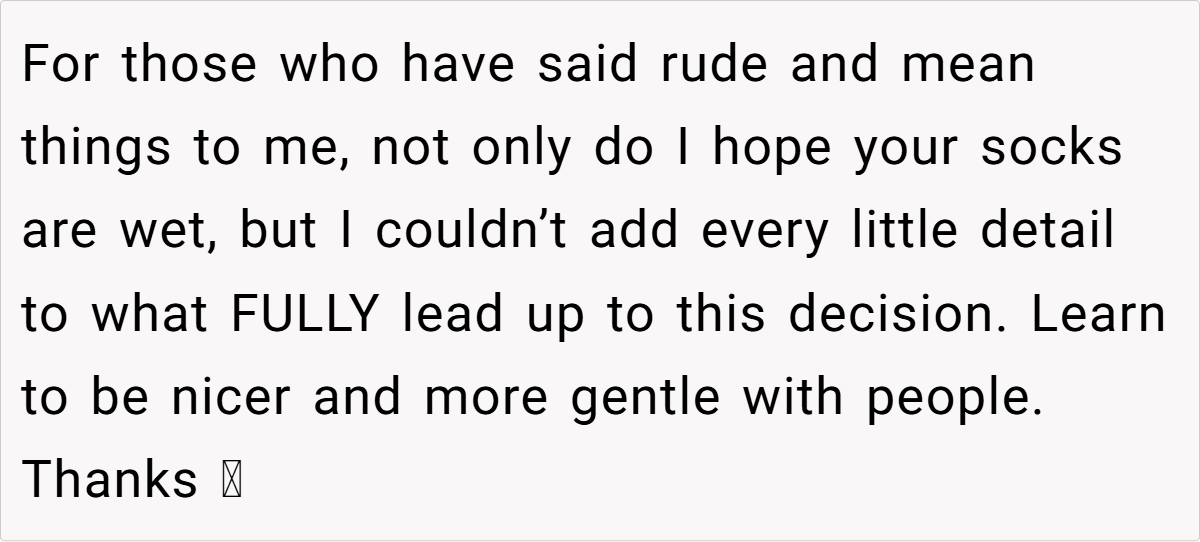 The poster’s decision reflects a deep-seated need for accountability and respect—a sentiment many can relate to when trust is broken. What do you think? Should boundaries be as rigid as they sometimes need to be, or is there room for forgiveness even in the wake of loss? Share your thoughts and experiences below.