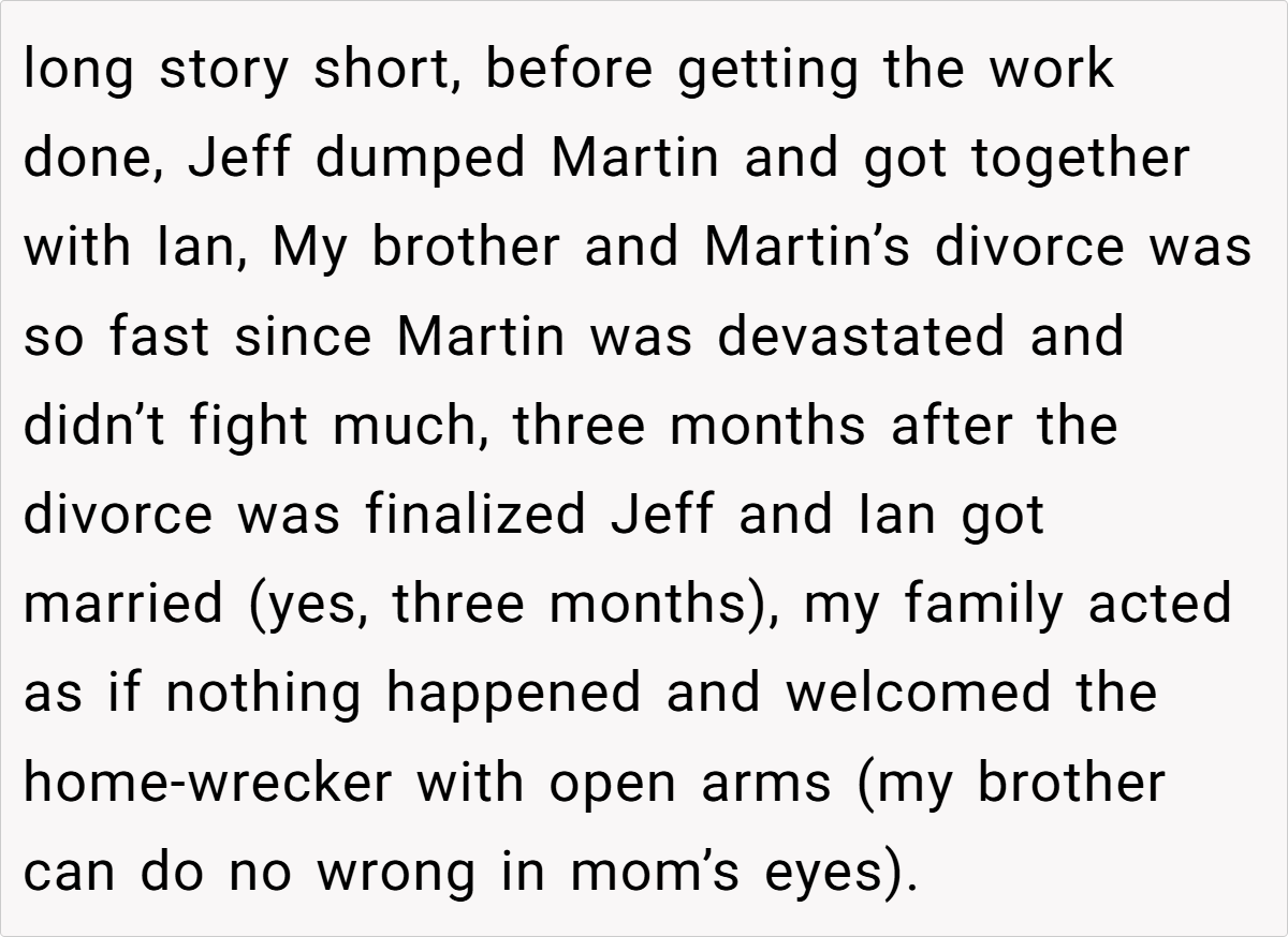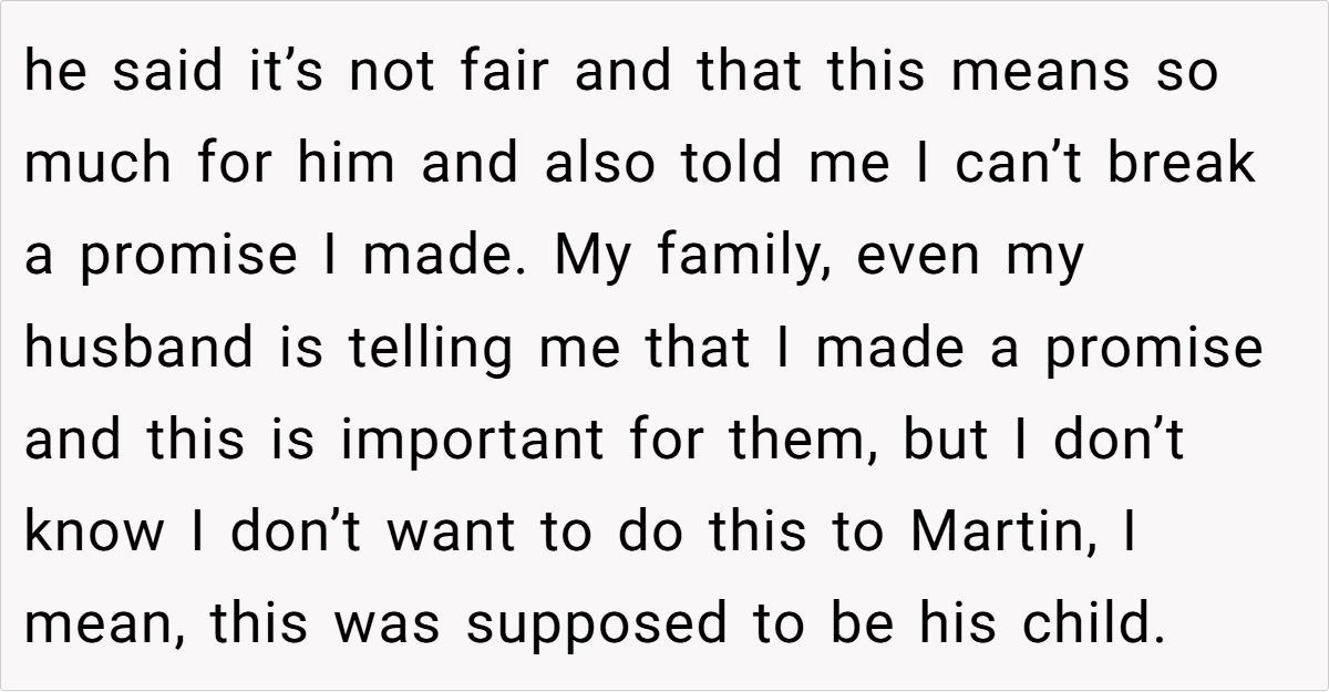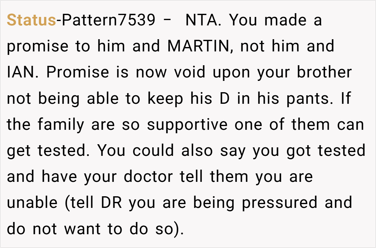 A Redditor shares her dilemma regarding her promise to donate her eggs to her brother and his ex-husband, a couple she once adored. After agreeing to be a donor years ago, her brother’s infidelity and quick marriage to the contractor who worked on their shared project shattered her trust.