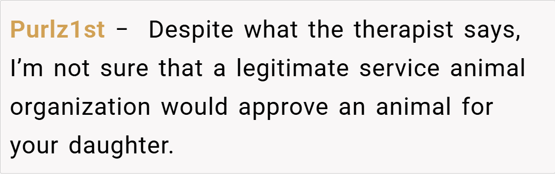She adds, “Taking away a service dog, which can be an essential tool for managing anxiety, might hinder the child’s progress. Instead, a gradual approach to accountability could be more beneficial in the long run.”