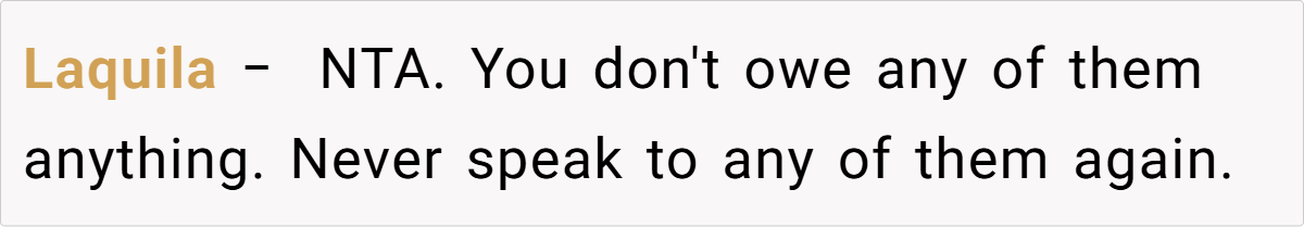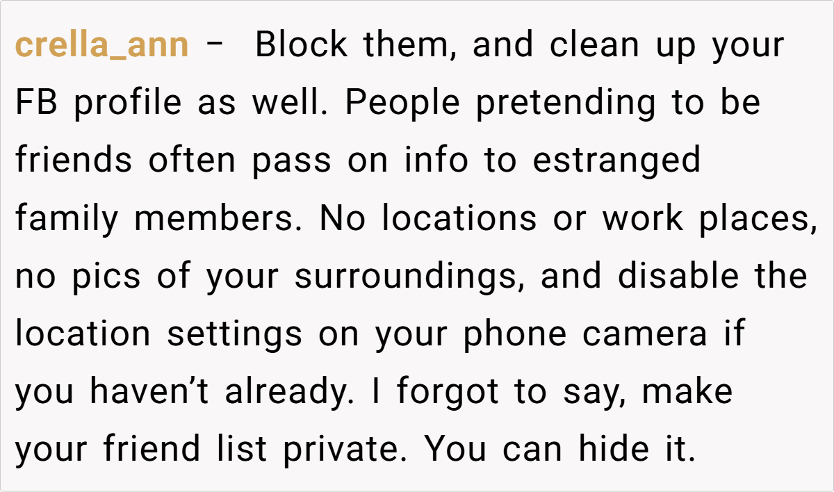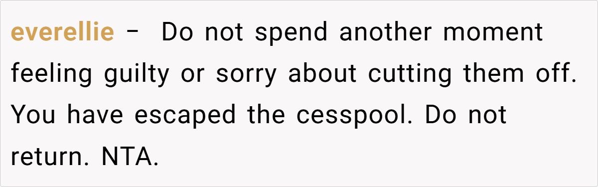 Experts in family dynamics emphasize that setting and maintaining strong boundaries is essential—especially when past abuse and betrayal run deep. Dr. John Gottman, a recognized relationship expert, notes that when a parent repeatedly violates a child’s emotional safety over decades, it is not only reasonable but necessary to maintain no contact as a form of self-preservation.