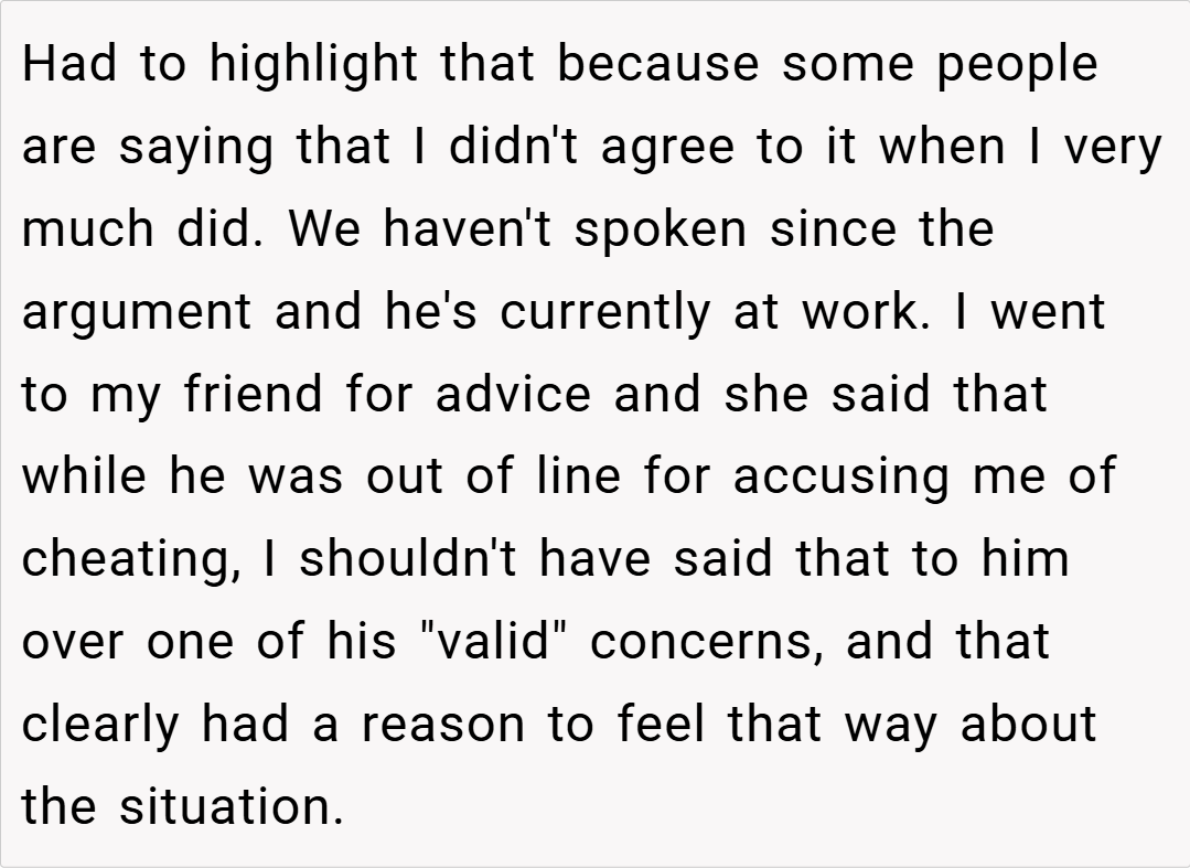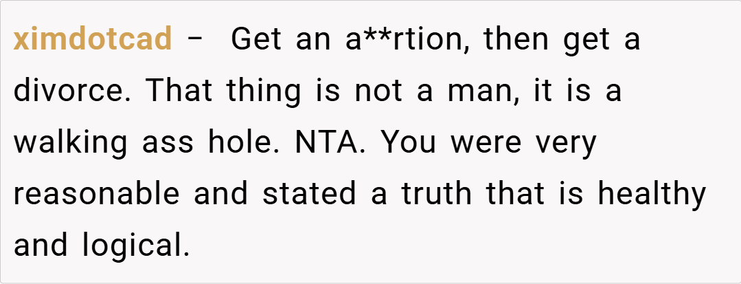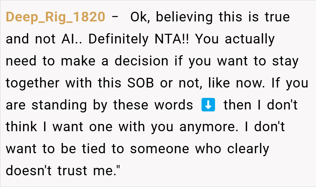 Reddit users are split on this issue. Many sympathize with her, arguing that a partner who doubts your loyalty to such an extent is showing deep insecurity and that her reaction is understandable. Others feel that while his request was hurtful, addressing the issue calmly might have prevented the escalating conflict. The overall sentiment, however, leans toward the importance of trust as the cornerstone of family planning.