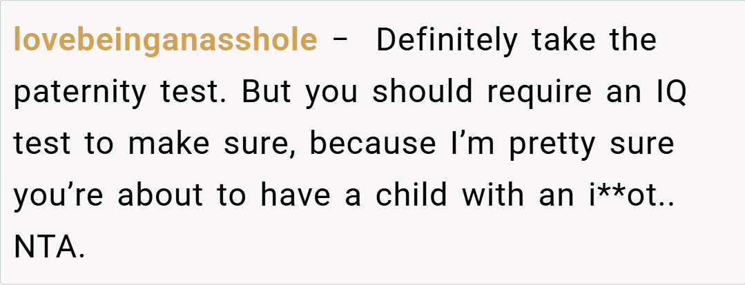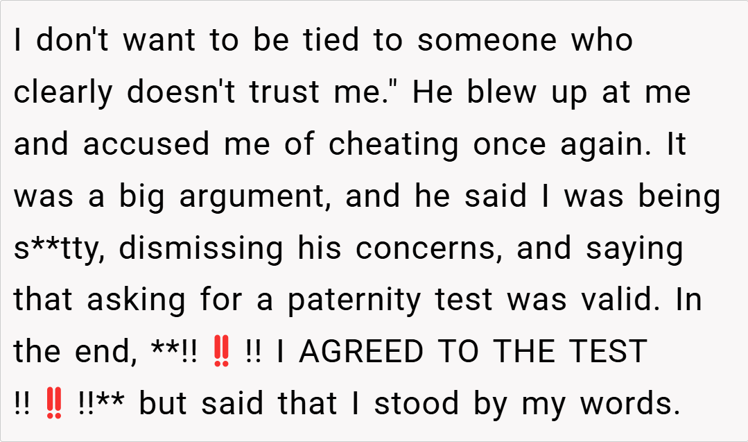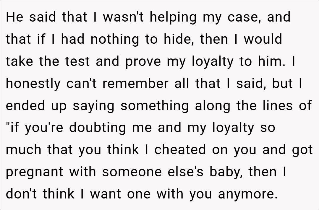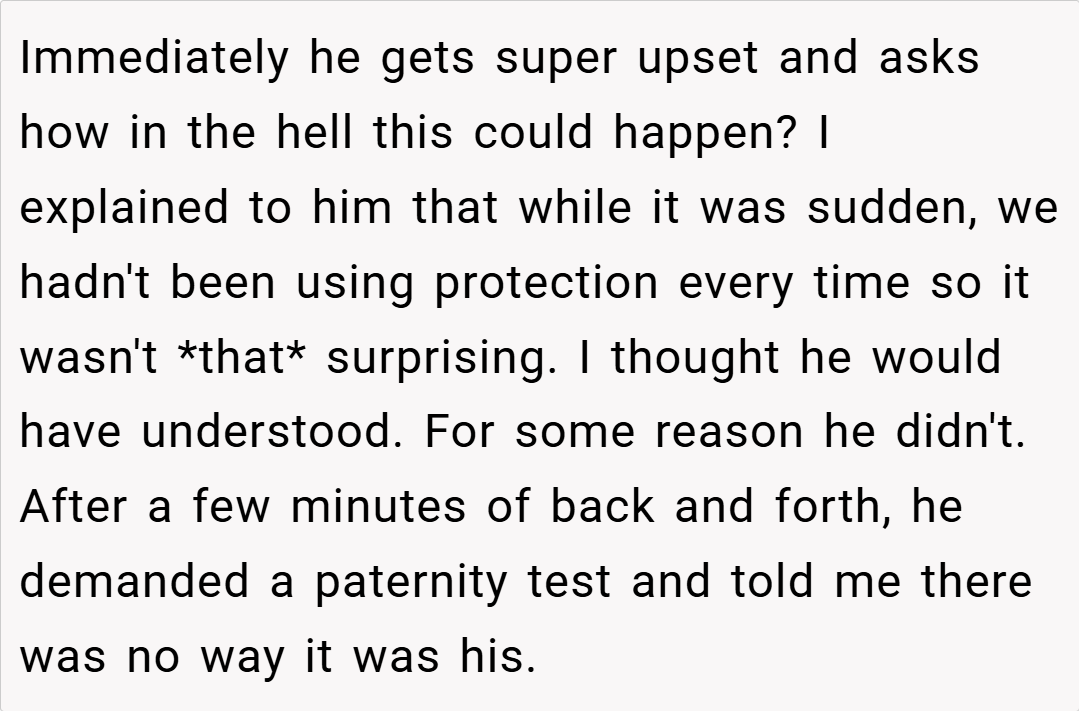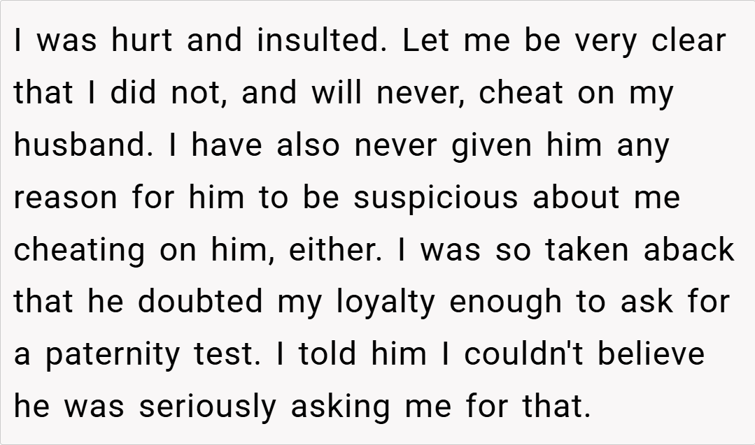 In this story, a 26-year-old woman recounts how her excitement about an unplanned pregnancy quickly turned to disbelief and hurt when her husband demanded a paternity test. His doubt not only wounded her deeply but also made her second-guess whether having a baby together is truly what she wants. Was her reaction a justified call for self-respect, or an overblown response to his insecurity?