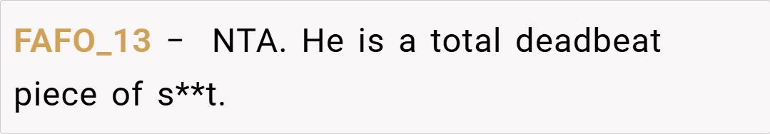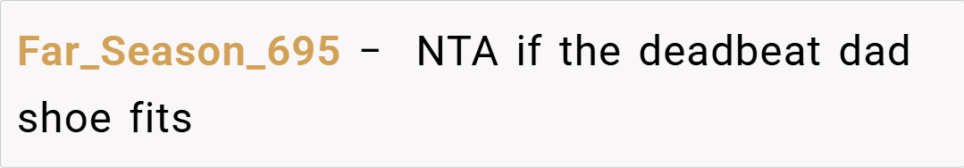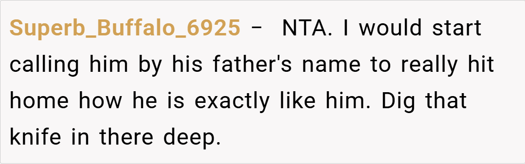 It’s not about being vindictive; it’s about acknowledging that repeated failures to fulfill parental duties have consequences.” This view supports the OP’s decision to draw a line in the sand by comparing his ex-husband to his own father—a figure who epitomized everything she detested in the way he treated his family. While some may argue that such a direct comparison might be too emotionally charged, experts assert that when underlying issues remain unresolved,