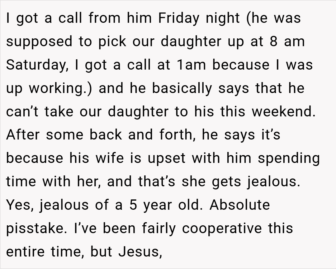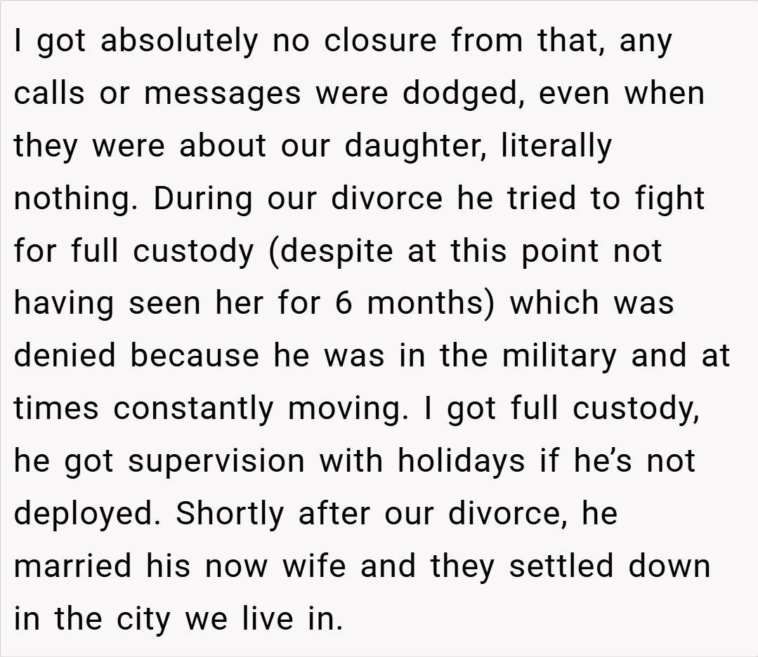 When years of emotional neglect and broken promises pile up, even a single phone call can trigger a storm of painful memories. Our OP, a 36‑year‑old woman, recounts how her ex-husband—whom she had loved and trusted for years—once again canceled on their daughter, leaving her emotionally devastated.