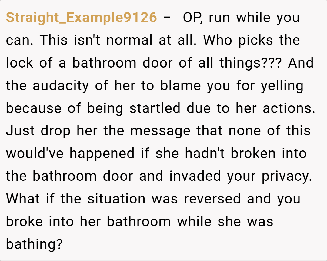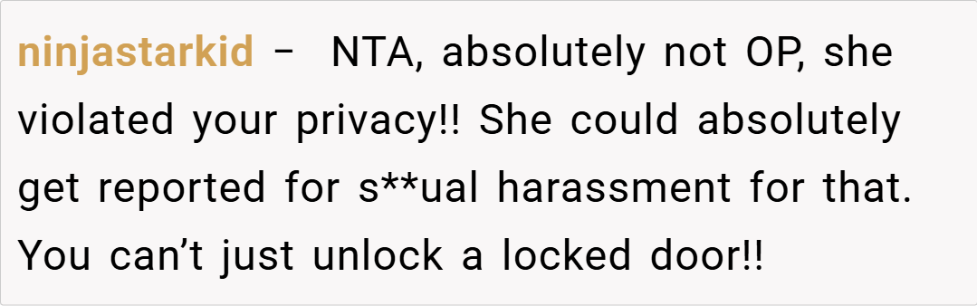 Many redditors empathize with the OP, arguing that when your privacy is violated in such an unexpected and invasive manner, a strong reaction is completely understandable. “If someone breaks into your private moment, you’re allowed to be furious—even if it comes out as a shout,” one commenter noted.