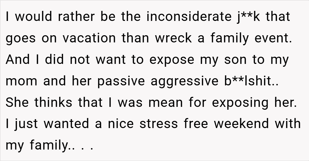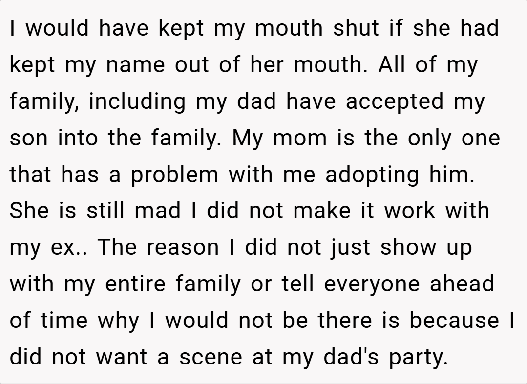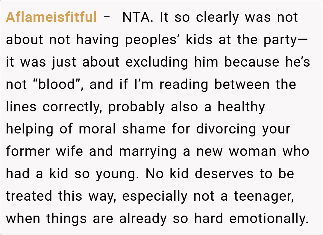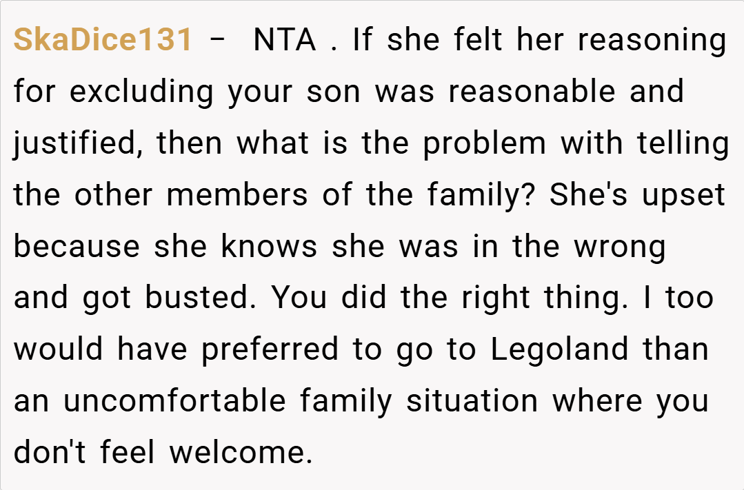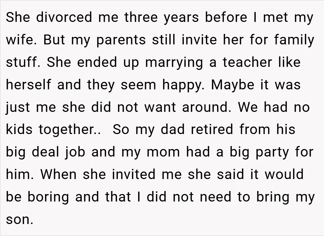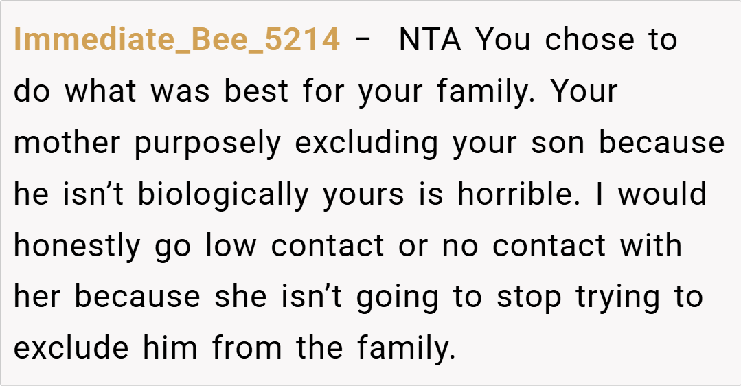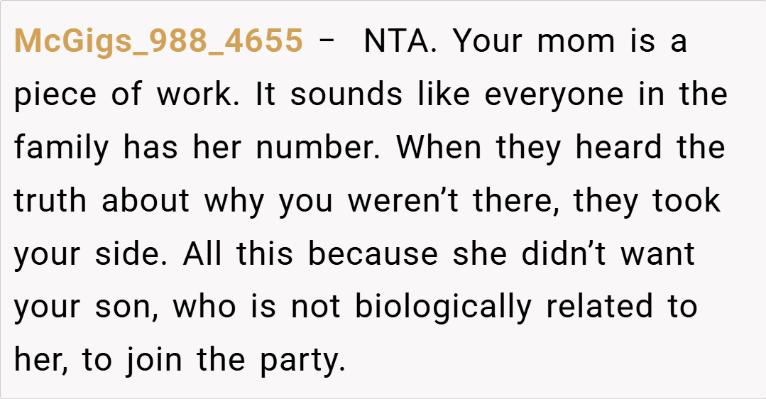 When his mom insisted he leave his son out of the event, it ignited a fierce debate about family, identity, and the right to raise a child on your own terms. For the OP, the decision was clear: if his son isn’t welcome in his new life, then he isn’t going to compromise his vision or his hard work. Having faced pressure from his family—who,