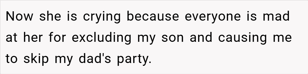 In the end, the OP’s decision to skip his dad’s retirement party because his mom insisted on not bringing his son is a strong stand for personal autonomy and financial independence. While some might call it heartless, the prevailing view is that if your hard work and dreams are being manipulated by family expectations, then you have every right to protect your own future.