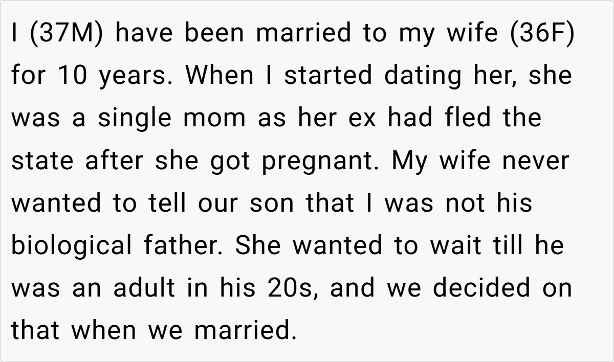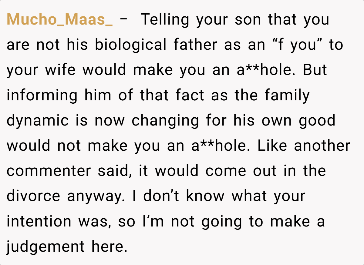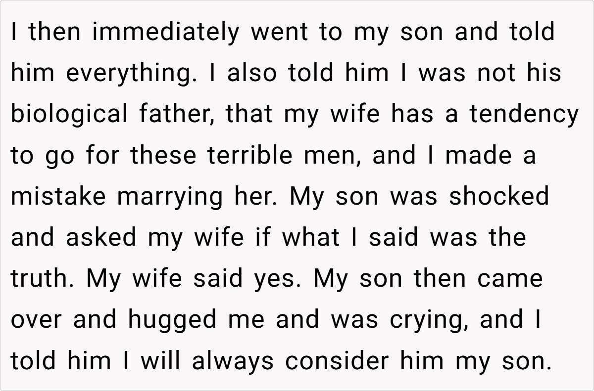 ‘AITAH for telling my 14 year old son I was not his biological father after my wife had an affair on me?’