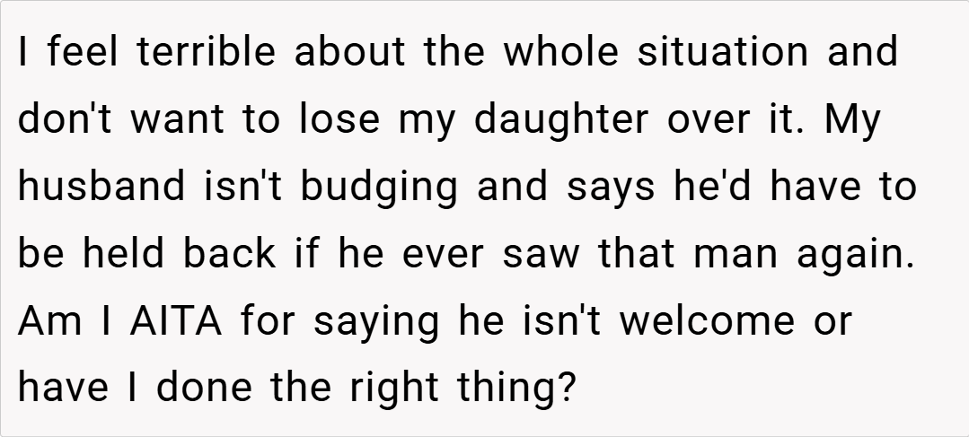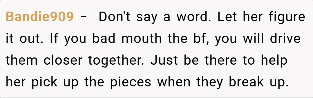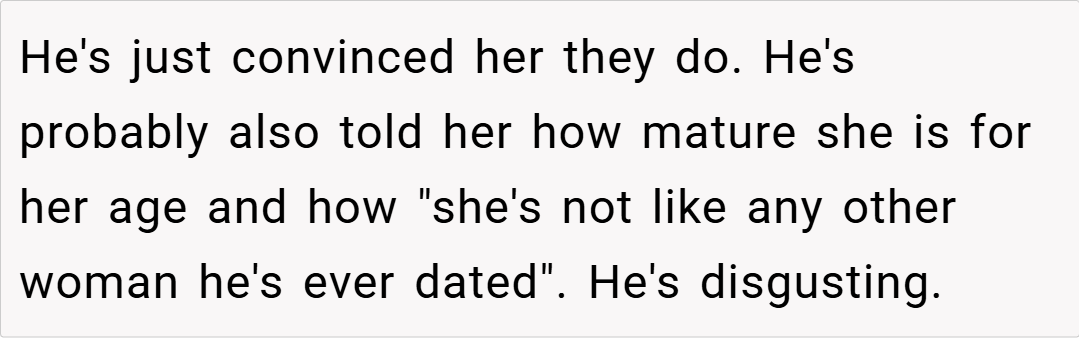 In the end, the OP’s decision to ban her daughter’s much older boyfriend from their home reflects a deep-rooted need to protect her child from potentially unsuitable influences. While some may view it as overly strict, many understand that the heart of the matter isn’t just about age—it’s about ensuring that the relationships in her daughter’s life promote a healthy, balanced future.