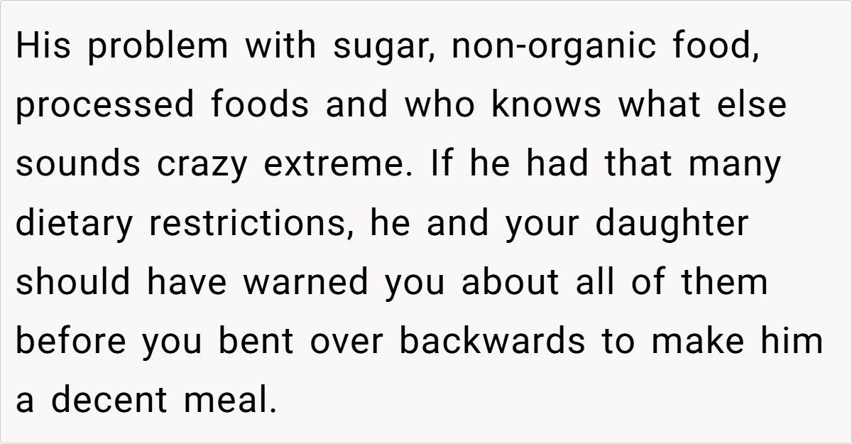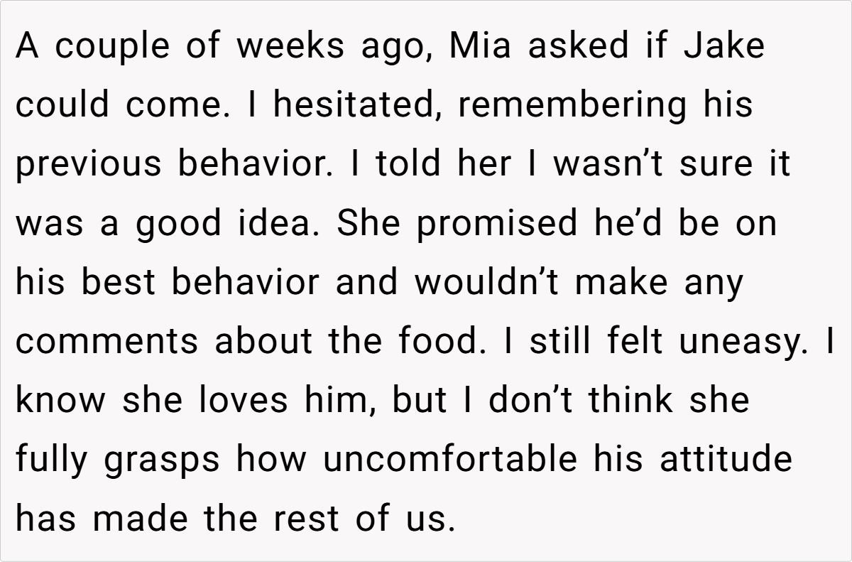 Food allergies and dietary restrictions are sensitive issues, and while many families manage them with care and compromise, there is a line between healthy discussion and judgmental lecturing. The host’s primary concern is that Jake’s behavior not only undermines the effort and love put into the meal but also risks alienating other family members.