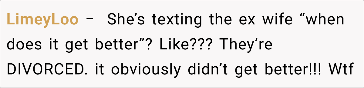 Is it an honest expression of frustration or an unnecessary jab that could hinder future harmony? With the ex-husband’s behavior seemingly unchanged despite the passage of time, the question remains: can old patterns ever truly be broken, or are we doomed to repeat them?