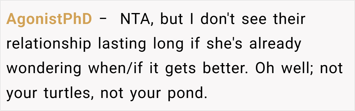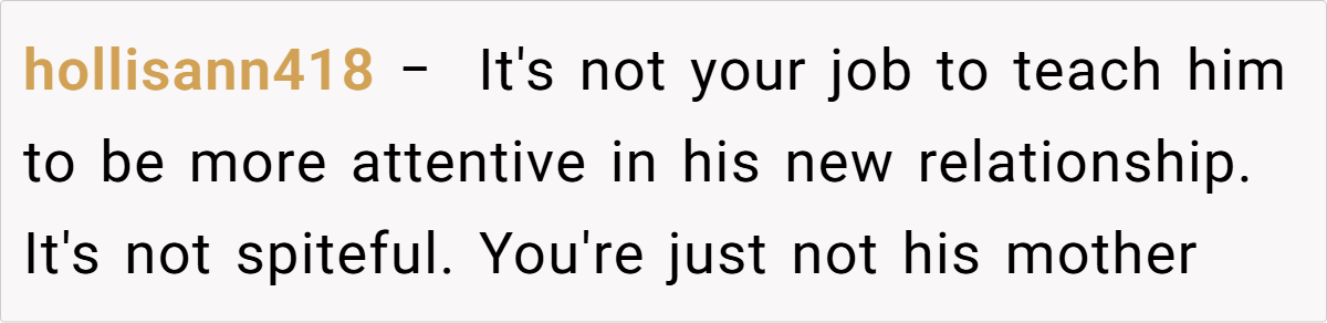 A quick summary of top comments shows a split among readers. Many believe that the narrator’s comment was justified—a reflection of years of unaddressed neglect that the ex failed to correct even after the divorce. Others feel that while the sentiment is understandable,