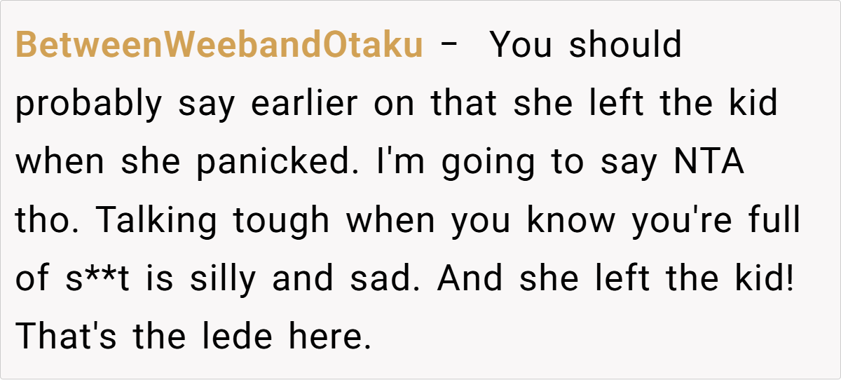A quick summary of top comments reveals a divided reaction. Many readers agree with the narrator’s frustration, arguing that proclaiming toughness in a vacuum is less valuable than measured, protective behavior in real situations.