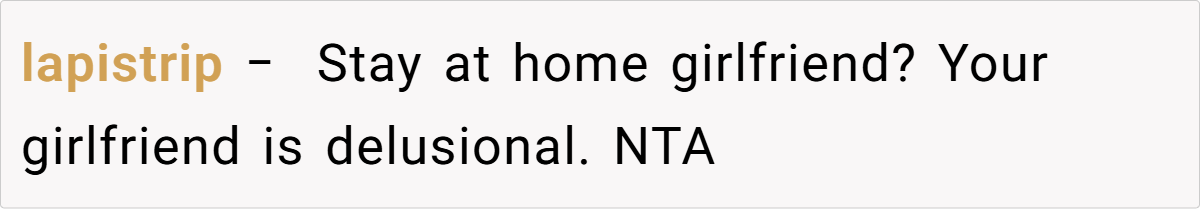 Moreover, this situation touches on the broader societal debate over gender roles and financial expectations. While some advocate for flexible roles where one partner may opt to focus on home life, the reality is that practical financial needs rarely align with idealized visions of a “stay at home” lifestyle especially when faced with mounting bills and limited income.