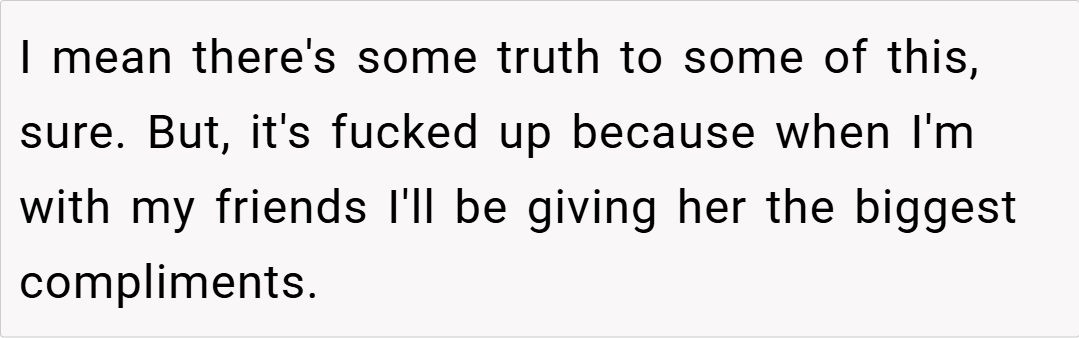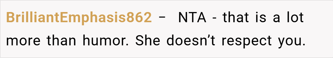 The Reddit community has been split on this matter. Some users sympathize with my need to defend my dignity, arguing that if a partner routinely undermines you in front of others, calling for boundaries is not only fair—it’s necessary. “If you’ve made your feelings clear and your partner still resorts to public insults, you have every right to stand up for yourself,” one commenter remarked.
