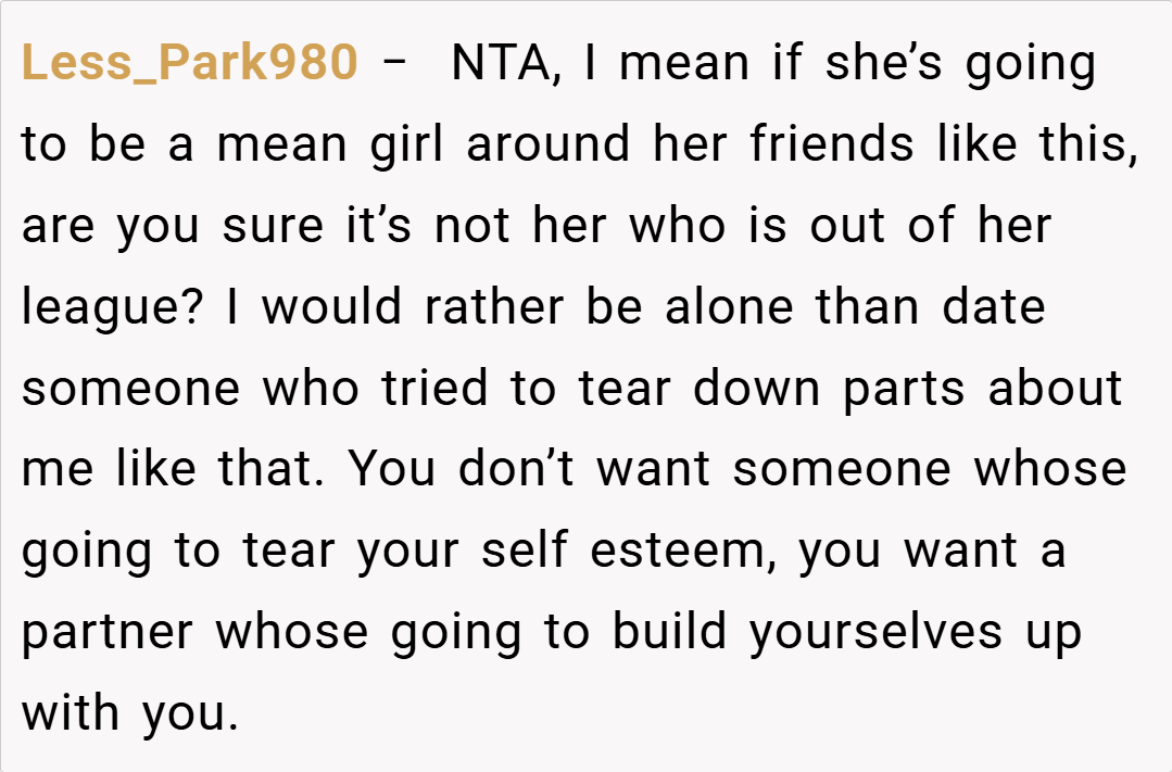 In the midst of friendly chatter that quickly turned sour, my girlfriend’s comments cut deeper than I anticipated. As much as I’ve always thought of myself as an “average guy” who brings his own unique charm, her relentless teasing in front of her friends felt like a public dismissal of my worth.